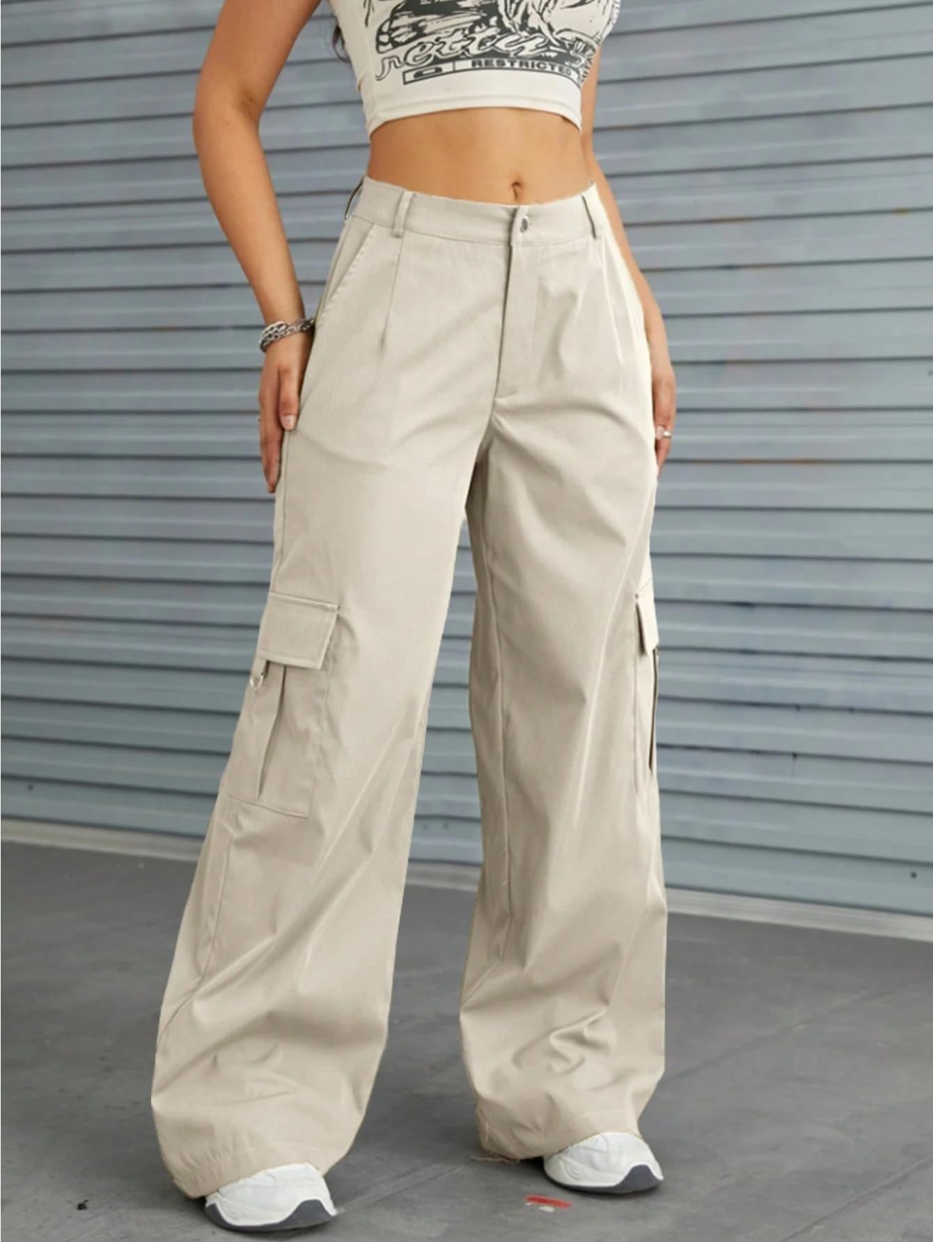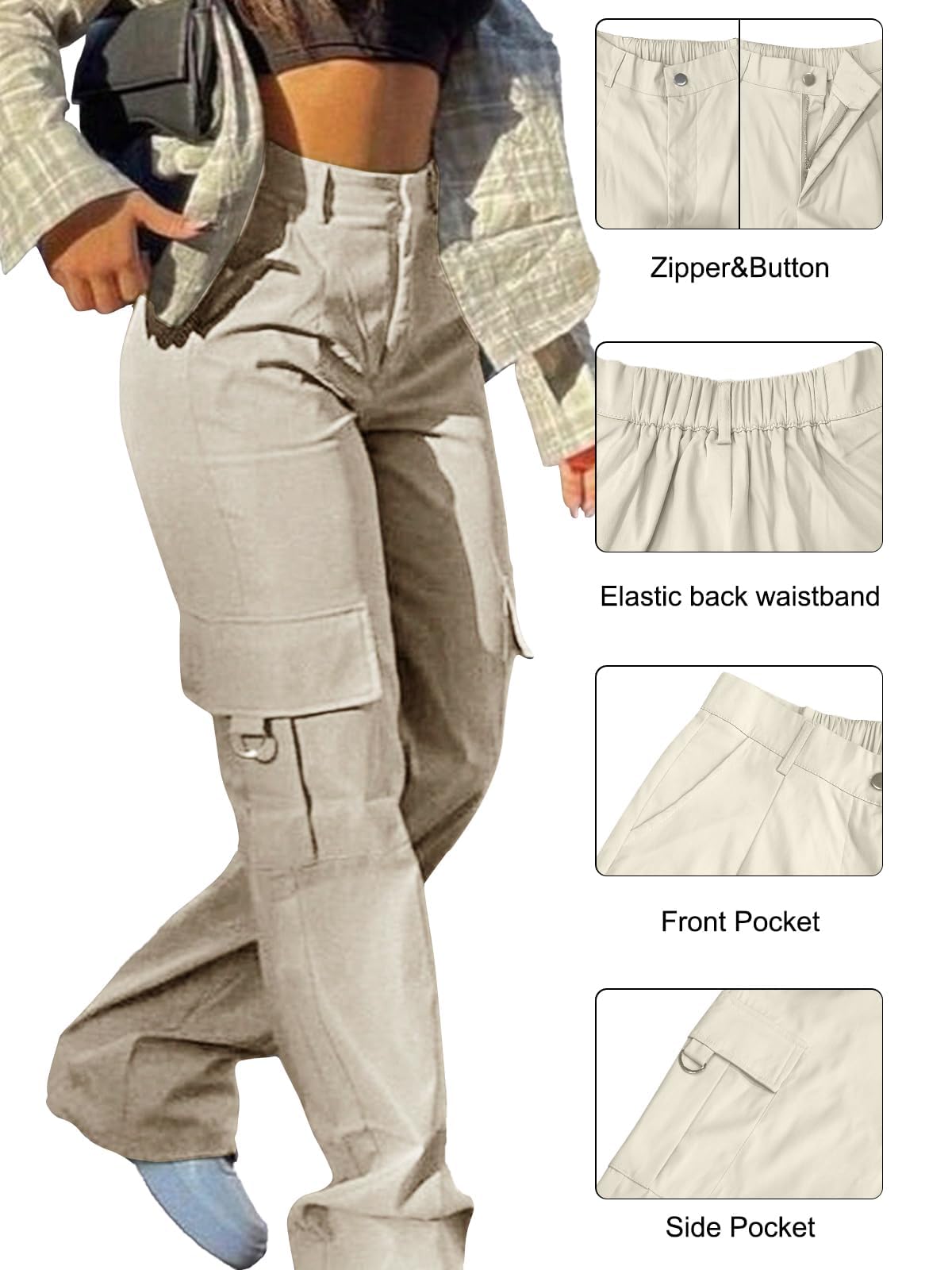 【FEATURES】Women's cargo pants feature 4 pockets, high waist, relaxed fit, elastic back waistband,zipper and button closure. hip hop joggers sweatpants, wide leg cargo pants, Y2K style, hippie outfits, and the loose fit is ideal for casual or sporty.