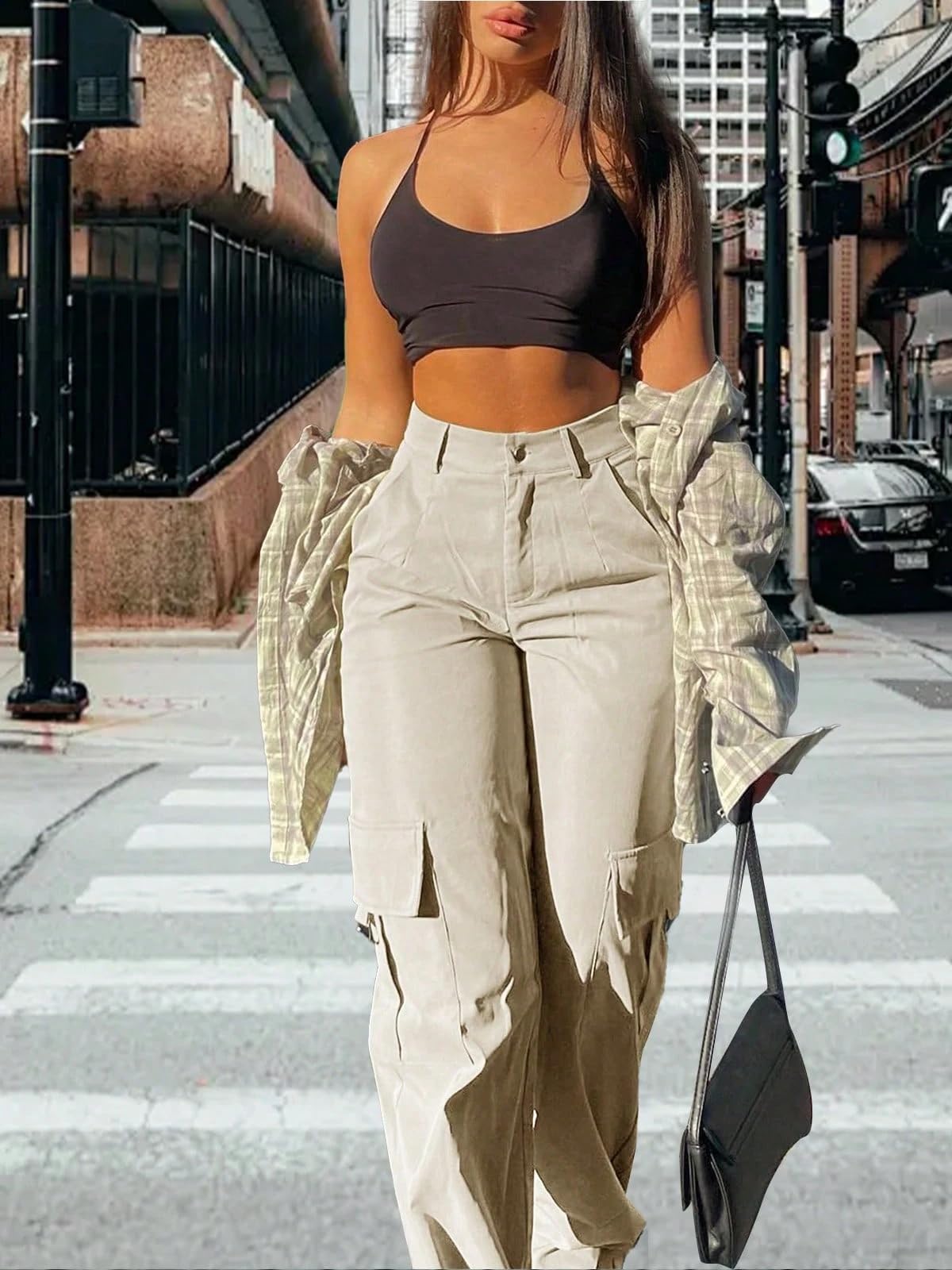 【MATCH】These Apricot cargo pants women with smooth contour and beautiful appearance, basic style which is bloggers favorite, perfect for your everyday essentials collection in your closet. These womens work pants can be paired with T-shirts,Crop Tops,sweaters,cardigans and jackets for all seasons.