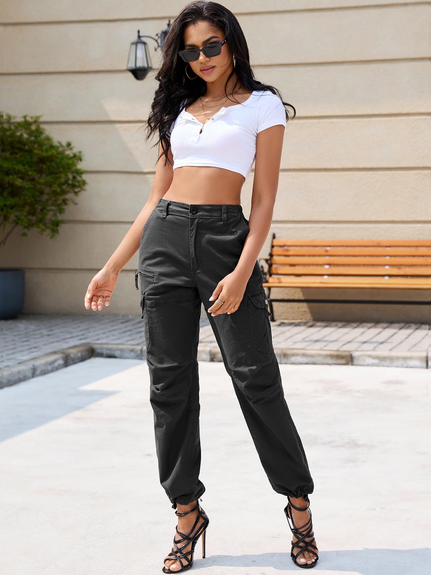 Cargo Pants for Women:Fitted shape, zipper placket, button closure, elastic waistband, suitable for different body shapes, straight leg, drawstring tie, can be worn with boots, fashionable and practical.
