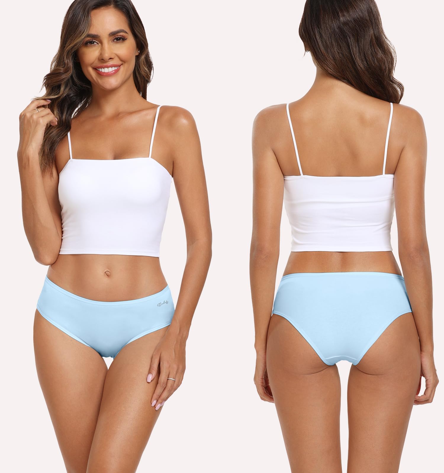 PREMIUM SOFT PANTIES: Our women's bikini underwear use high stretch soft fabric with double layer seams that won't split; stay in place even with frequent activity—never roll over along the edge, won't bite into legs, snagging, and riding up. Provide you with maximum comfort when working, exercising, shopping, and sleeping
