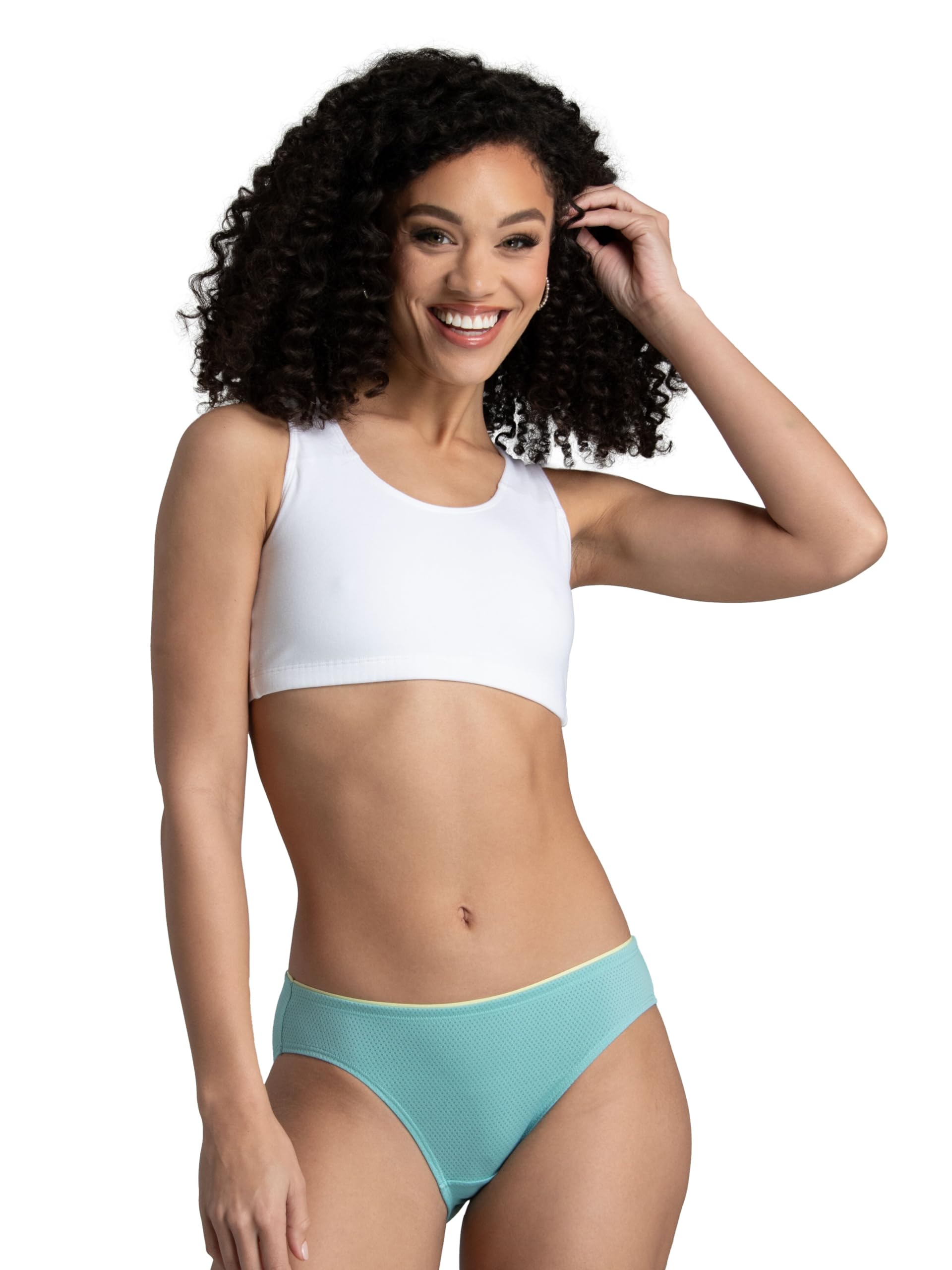 Fruit Of The Loom Womens Breathable Underwear, Moisture Wicking Keeps You Cool & Comfortable, Available Plus Size Bikini Style, Micro Mesh - Bikini - 6 Pack - Colors May Vary, 5 US