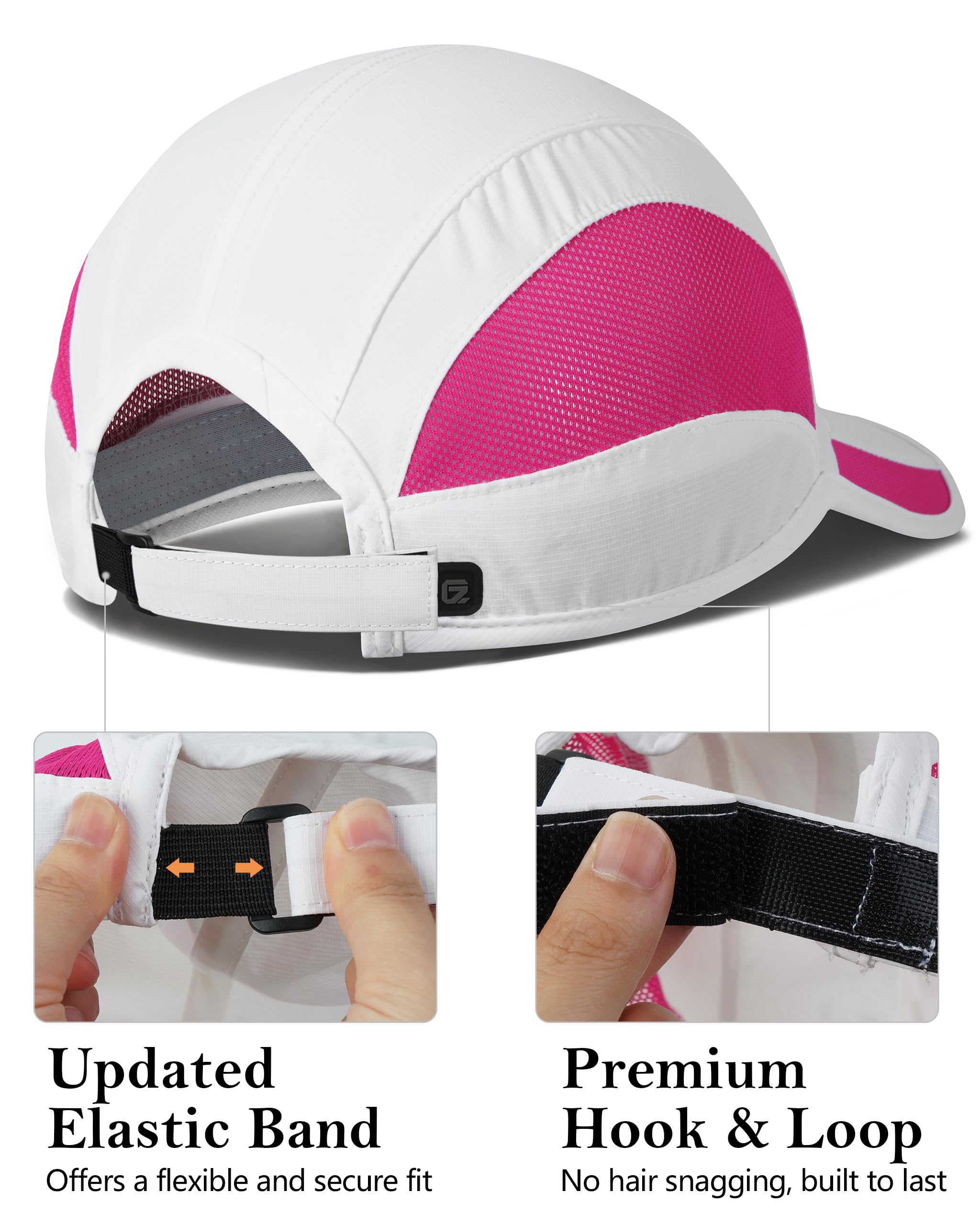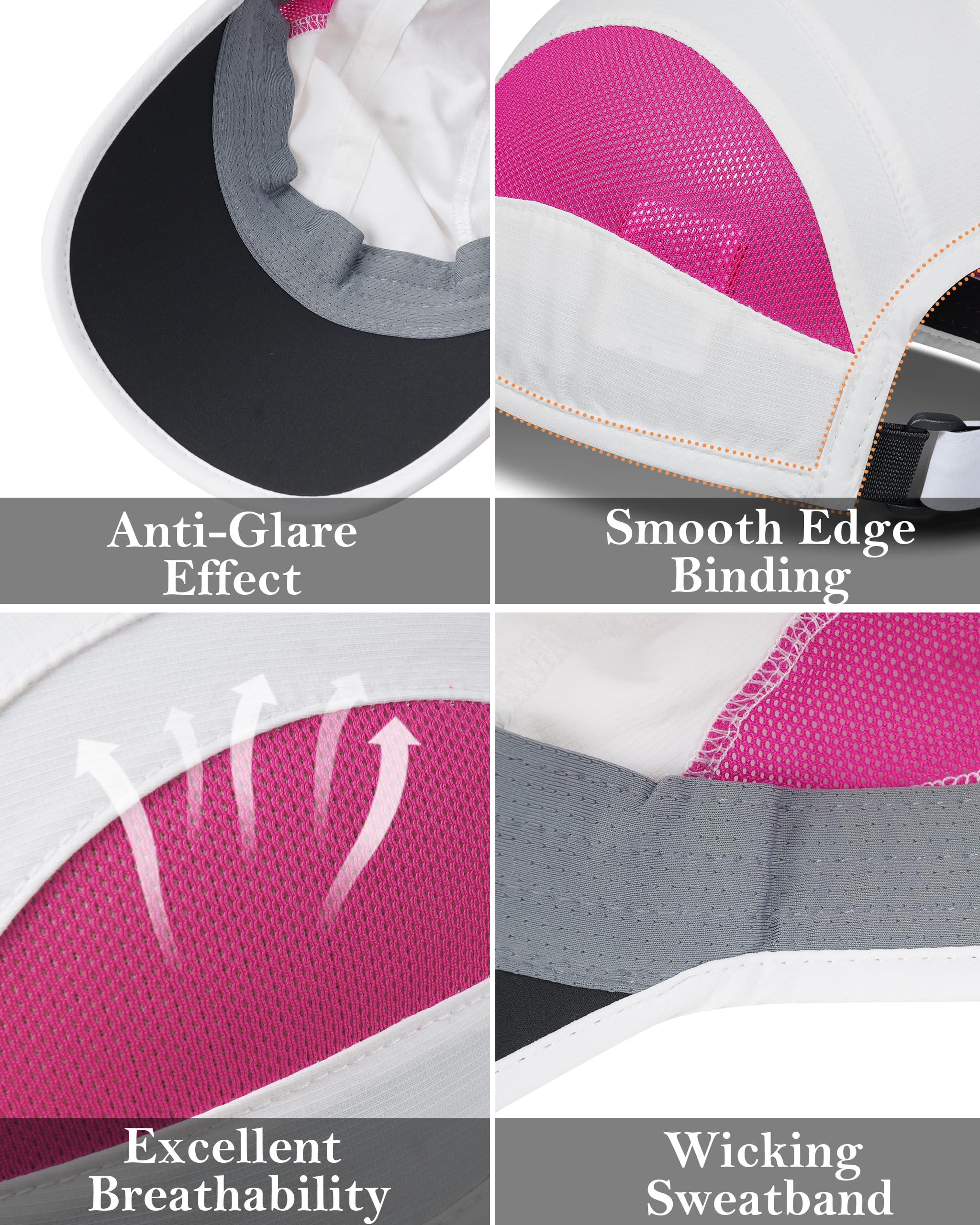 Quick Drying Running Hat: This GADIEMKENSD hat is made of breathable fabrics, even if the hat is wet with sweat or light rain, it will dry quickly. Built in sweatband removes sweat from eyes and face. The two-side mesh design allows for moisture and heat to easily escape these caps, which not only keeps your noggin cool, but you’ll also stay dry