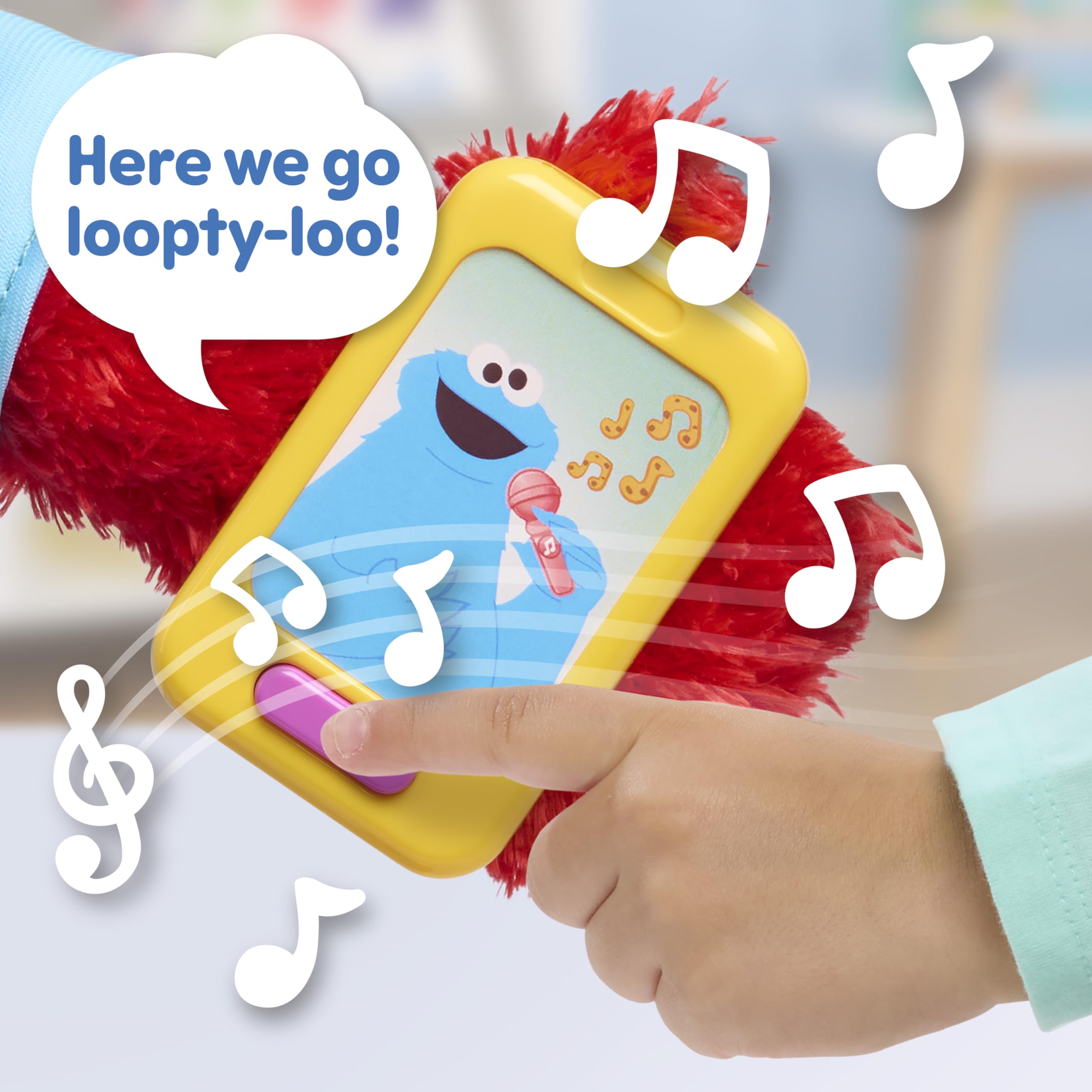 Lots of Ways to Play: Press Elmo’s feet to learn about numbers and letters. Press the crayon to see it light up as Elmo talks about colors. Press his cell phone to hear Elmo sing “Here We Go Loopy Loo,” and “You Are Elmo’s Sunshine.”