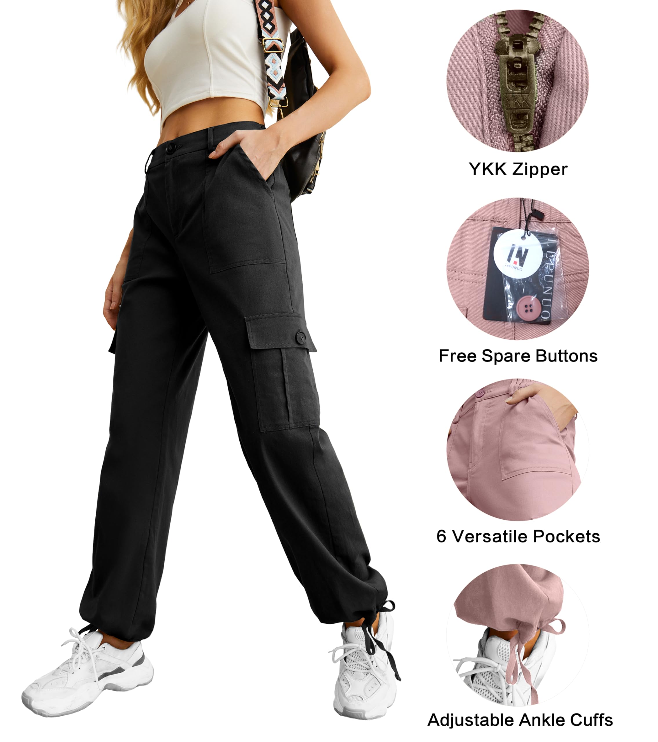 Features: Lepunuo Cargo pants with 6 pockets, 2 deep side pockets for phone, wallet and keys, and 4 pockets for your essentials. Stretch elastic high waist, Relaxed fit, Zipper and button closure hip hop joggers sweatpants, Wide leg cargo pants, Y2K style, Hippie outfits; The adjustable ankle cuffs of the hiking pants keep legs long, and the loose fit is ideal for casual or sporty