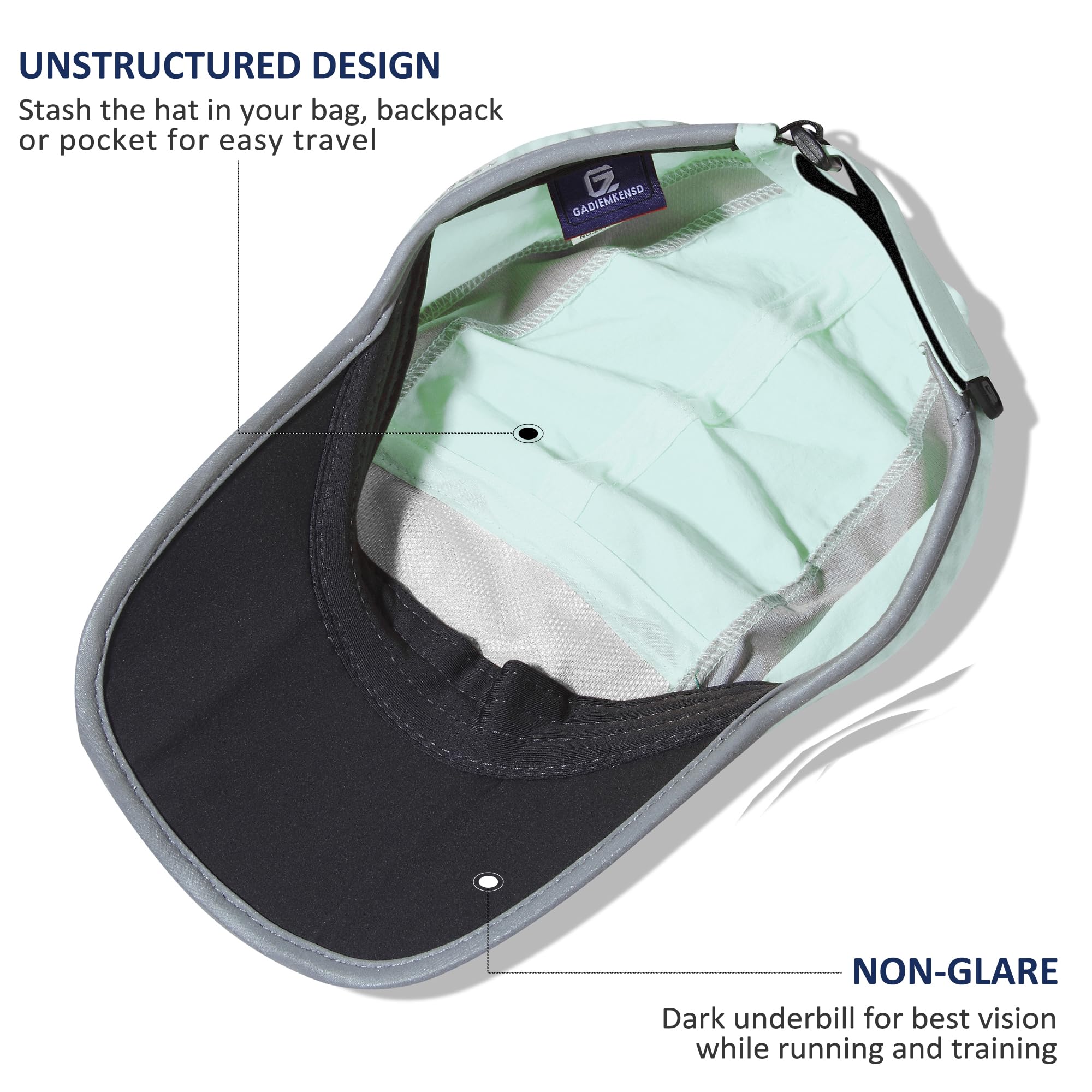 Reflective Foldable Brim: The brim with 3-panel bill design, can be folded and fit into any pocket or backpack. Reflective Brim for increased visibility and safety on low-light runs