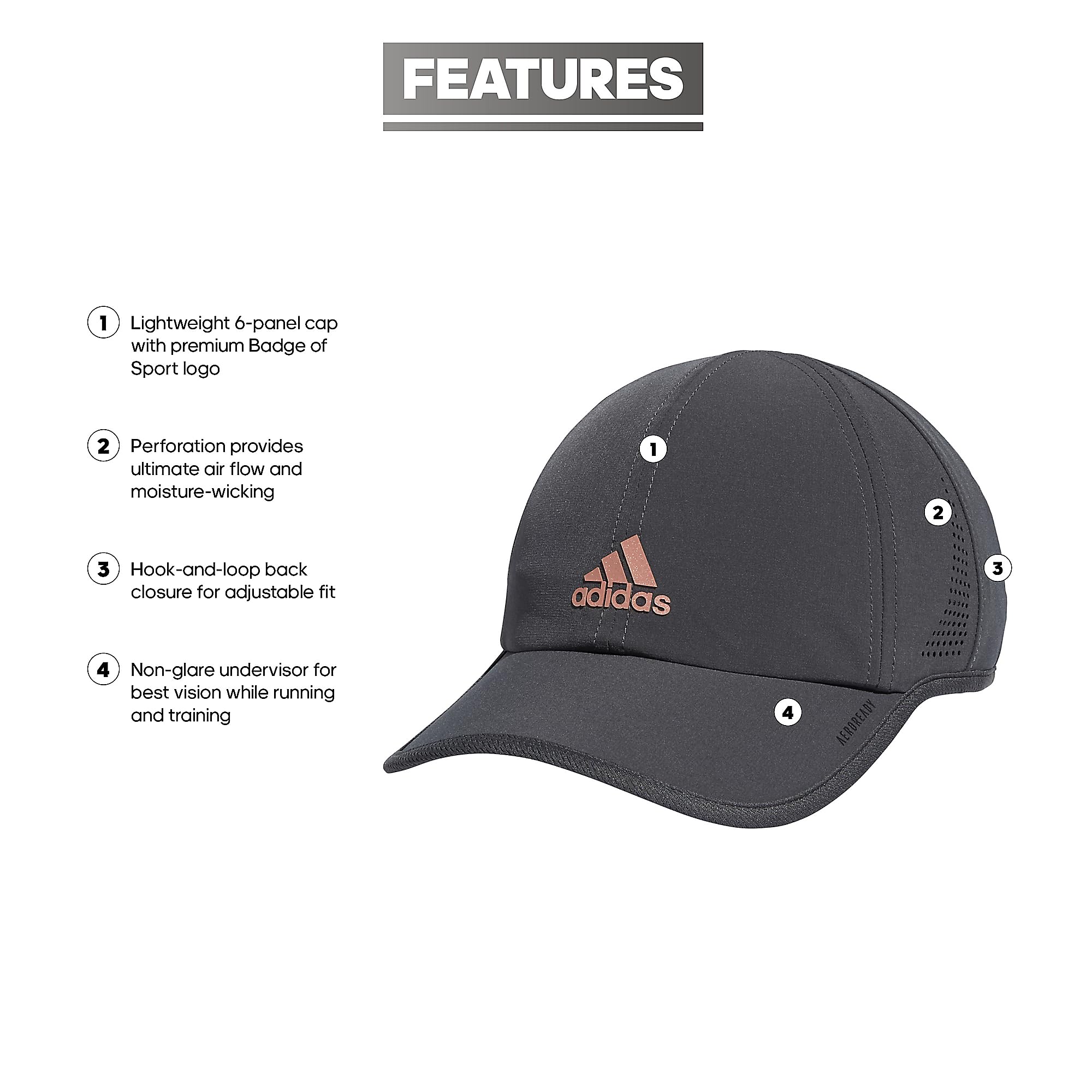 Description From long runs to laid-back weekends, this adidas hat keeps you comfortably under shade. Made from lightweight fabric that's perforated for an airy feel, the relaxed cap helps you stay cool and dry, whatever your plans. Adjust the fit to your liking and you're ready to go. This product has reflective elements for design and decoration reasons only. It is not intended or suitable for the use as Personal Protective Equipment PPE (e.g. to protect by enhanced visibility) and would not meet mandatory PPE standards