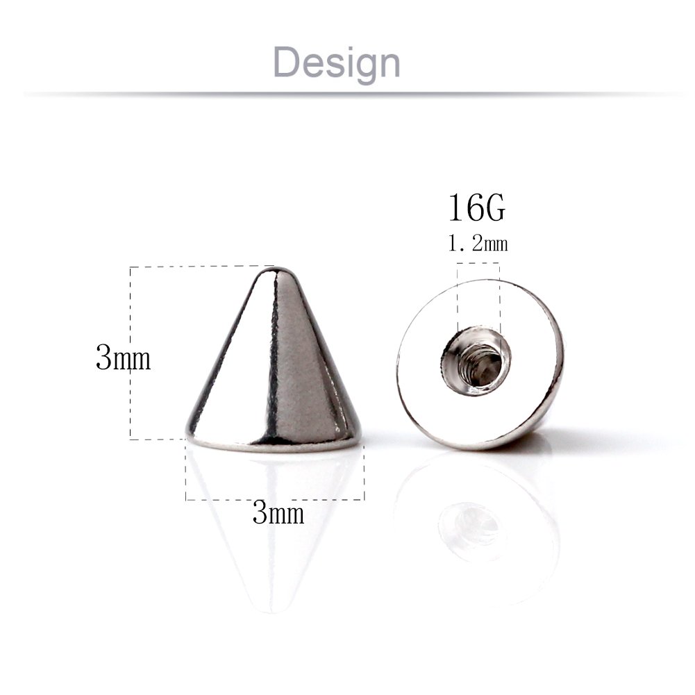 10PCS 14G or 16G Externally Threaded Replacement Ends for Body Piercing Barbells. Our replacement end spikes have different GAUGE and SIZE available,please choose the one fit you.