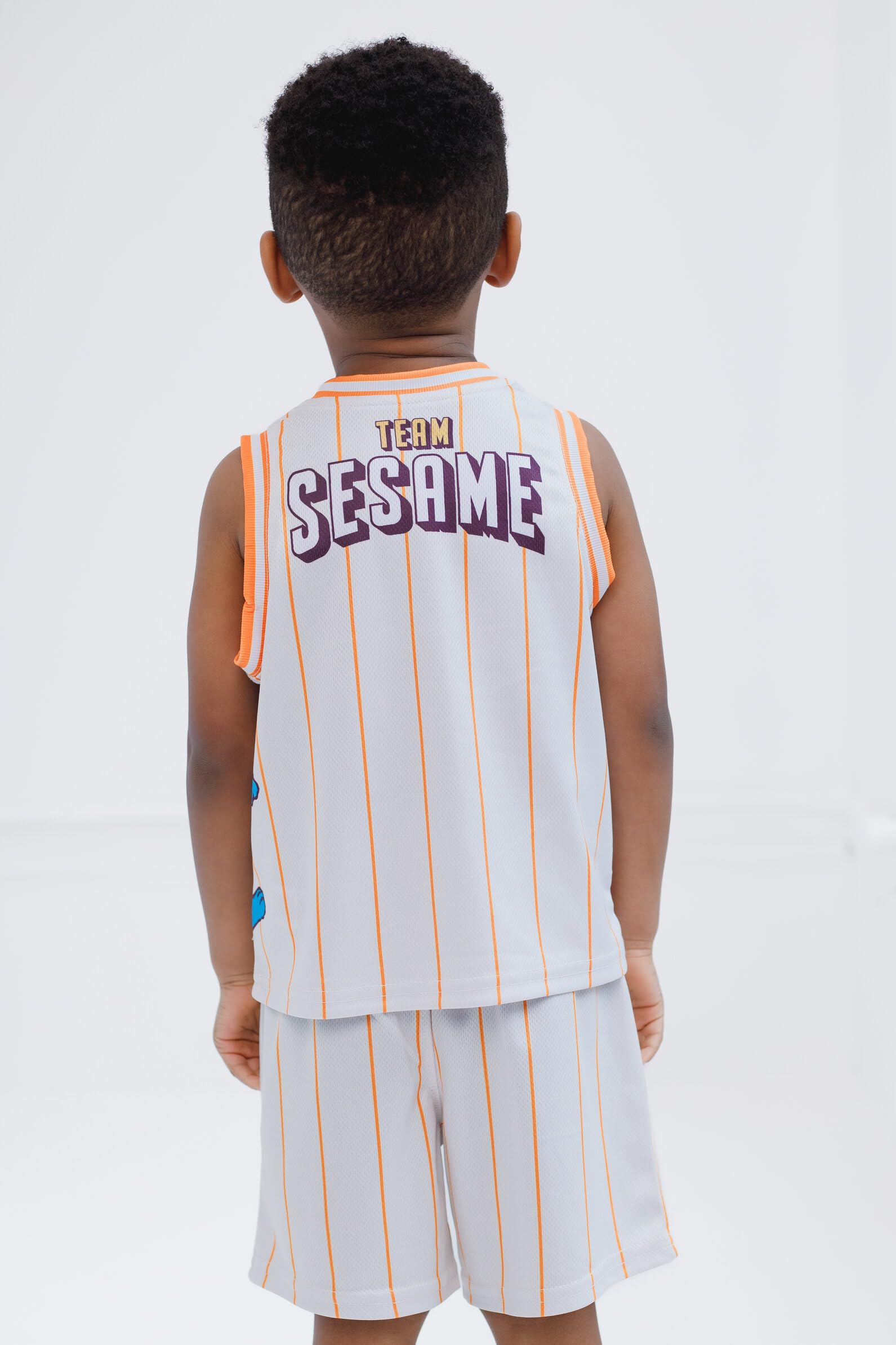 Description Dress your little one in this adorable Sesame Street sports set and watch them learn and play with their favorite characters! This stylish sleeveless tank top and basketball shorts set features a fun striped jersey design with the words "Team Sesame" on the back and cute artwork of Elmo, Cookie Monster, Big Bird, Grover, Oscar the Grouch, Bert, and Ernie playing basketball that your baby or toddler will love to wear! Made of a soft and lightweight mesh material for lasting comfort, this fashionable Sesame Street athletic outfit is perfect for sports, play, and everyday wear!