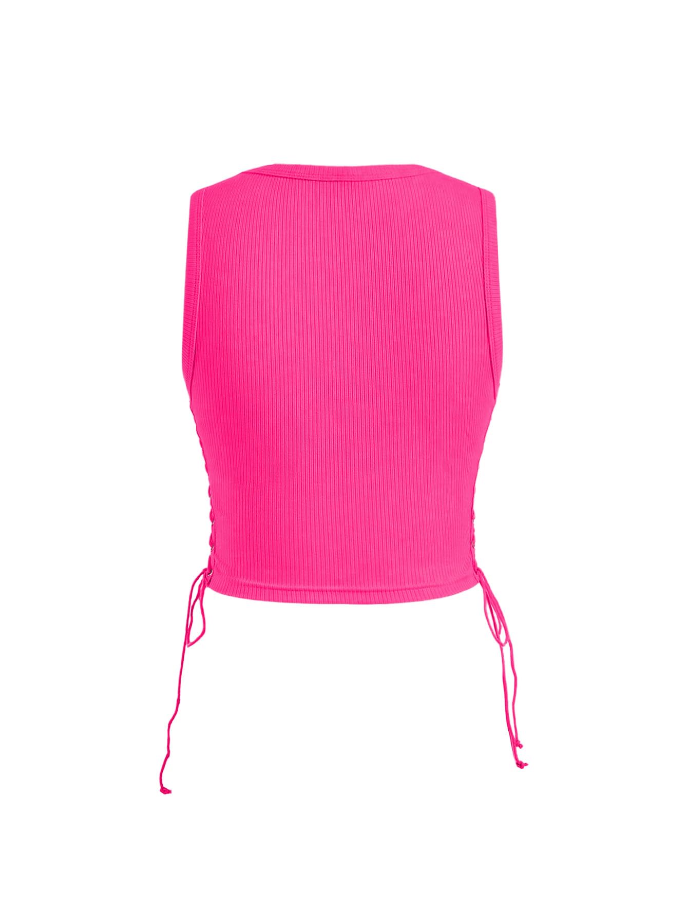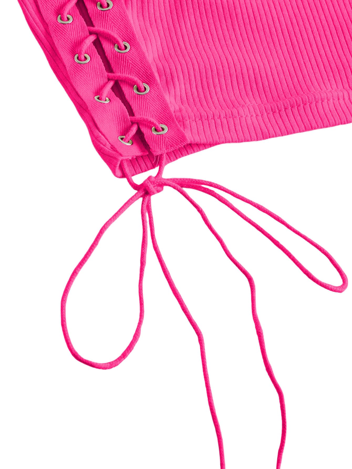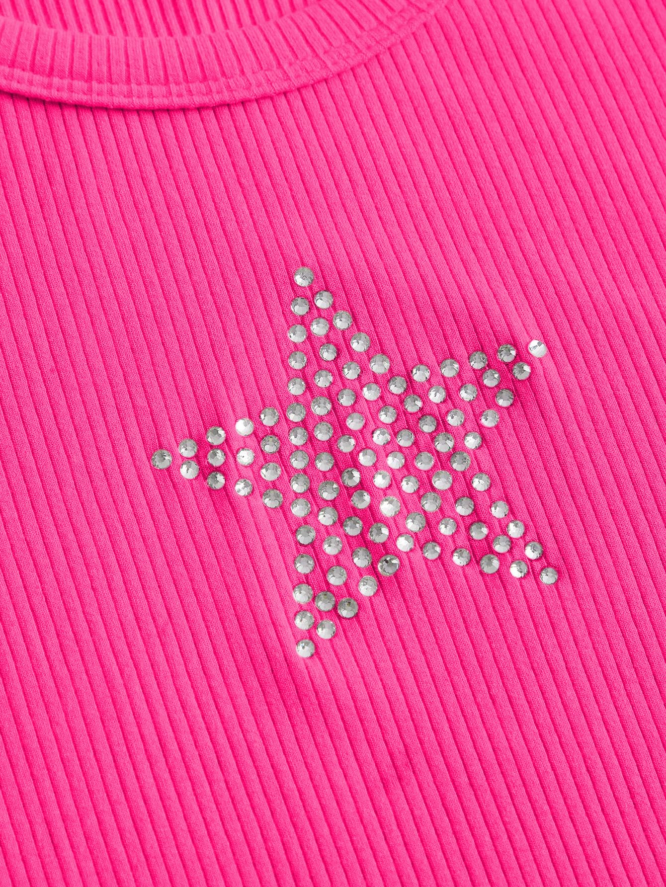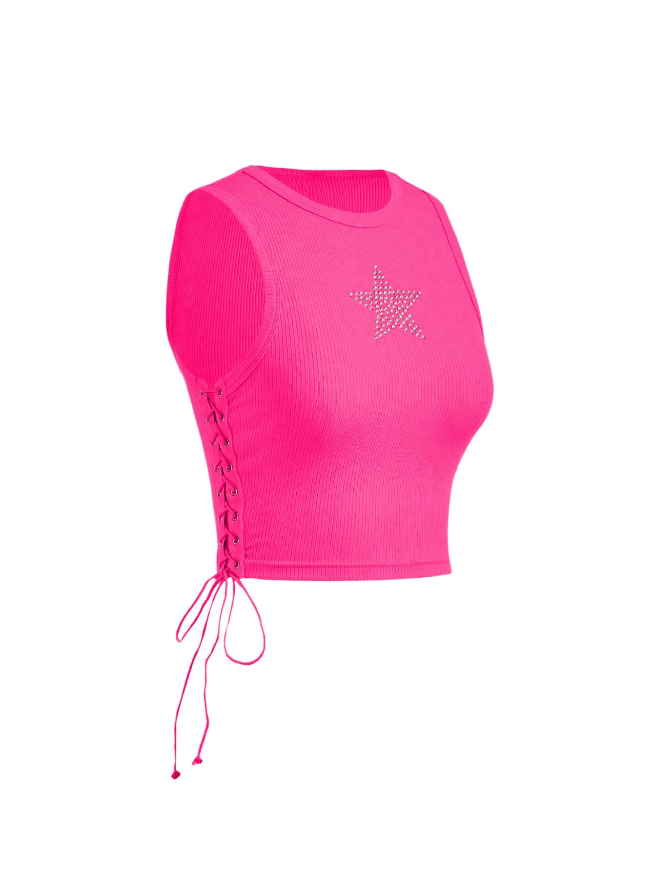 Sleeveless Star Rhinestone lace up slim fit crop tops for women