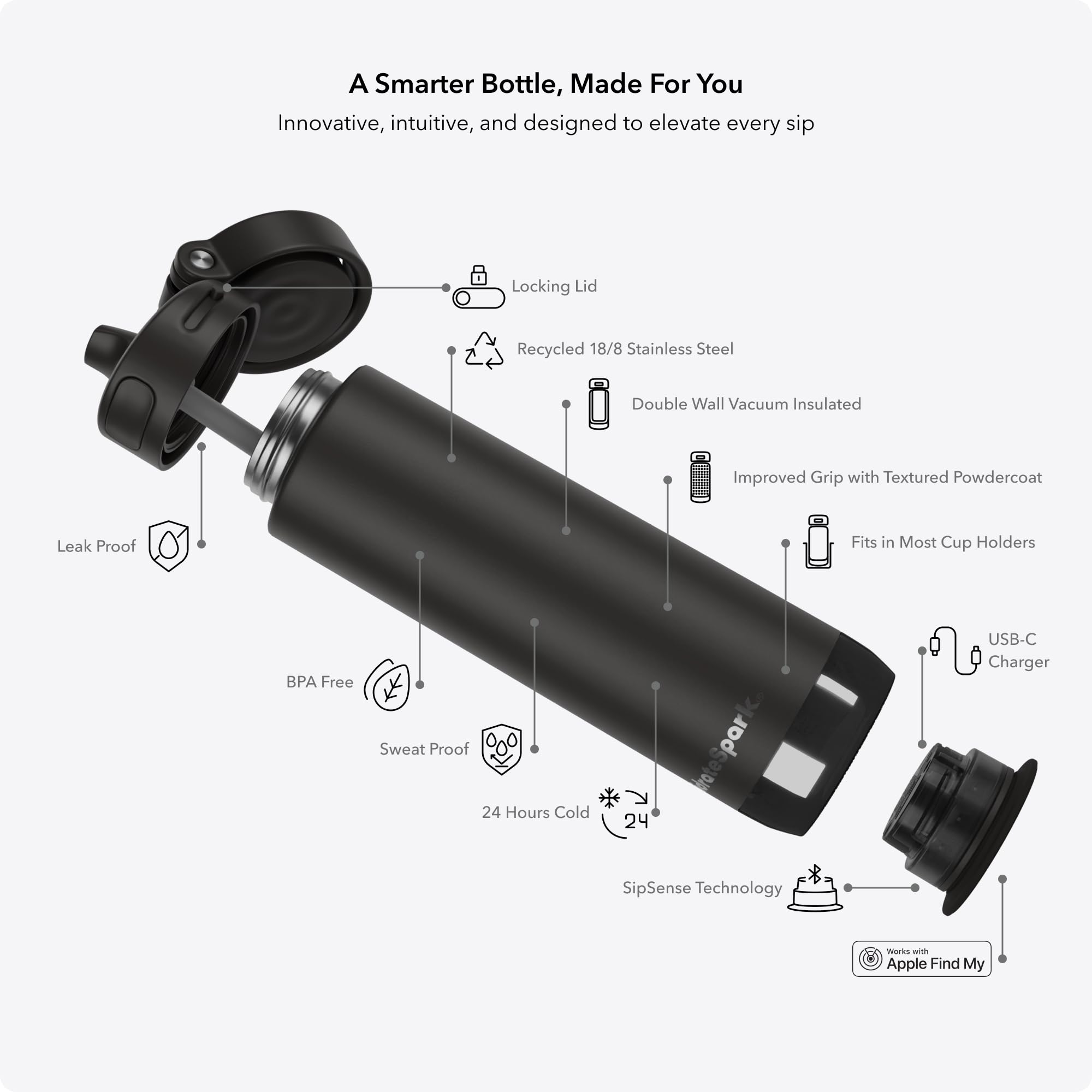AUTOMATIC HYDRATION TRACKING – SipSense powered sensor uses advanced weight sensing to track every sip and syncs to the app to count toward your daily hydration goal. USB-C rechargeable with up to 21 days of battery life per charge.