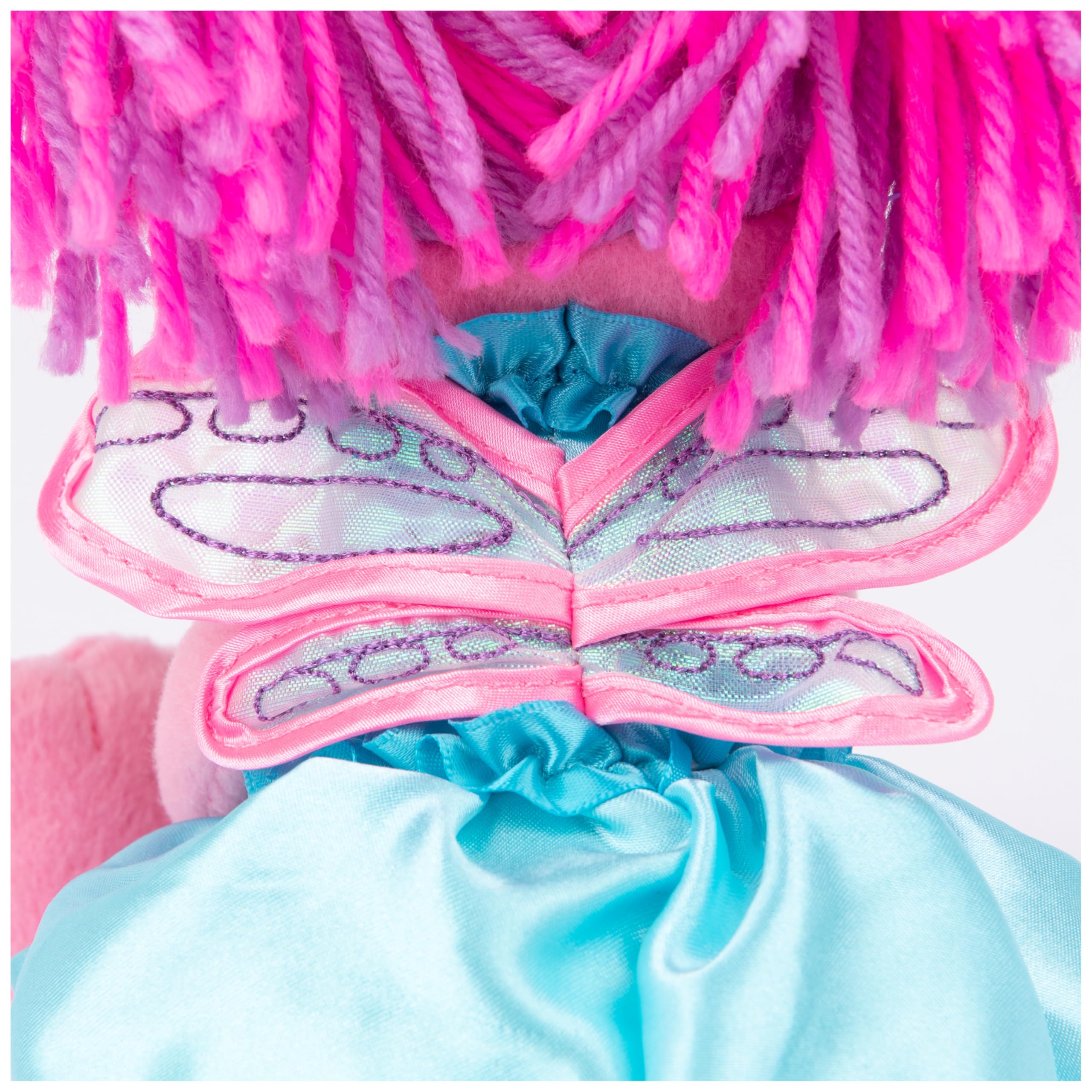 SESAME STREET ABBY CADABBY PLUSH: This adorable plush features Abby with sheer iridescent wings and her signature sky-blue dress, holding a yellow flower with a smile. She also features soft pink plush and her bright pink and purple hair in pigtails