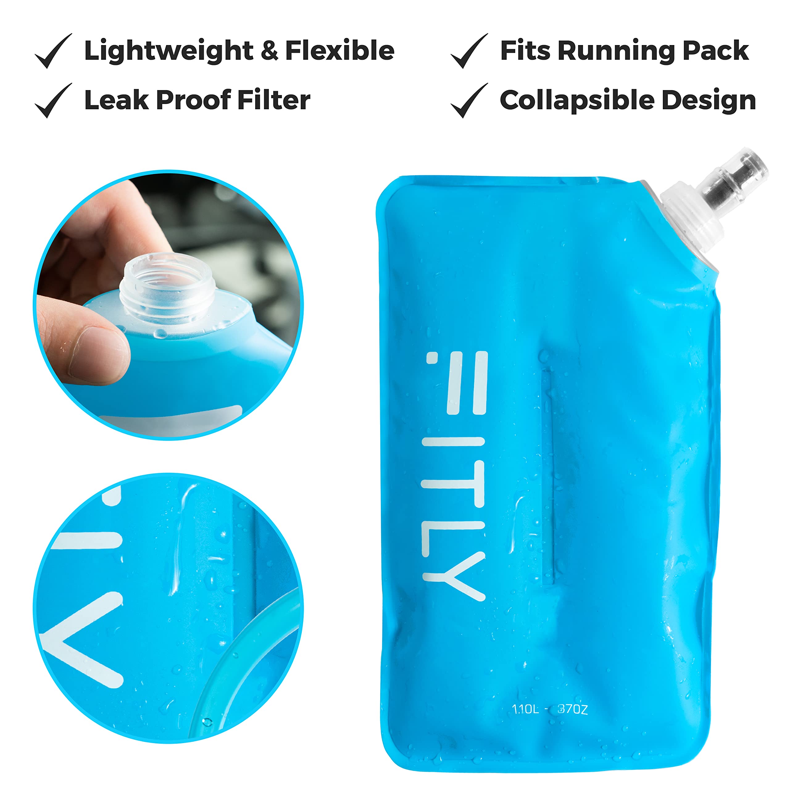 HYDRATION ON THE MOVE: Our large collapsible running soft flask is a compact and eco-friendly way to stay hydrated on the move! The soft water bottle is the perfect hydration tool for active individuals. Our soft water bottles for runners shrink as you drink, taking up minimal space and won’t slosh around, making it perfect for running, hiking, skiing or any rigorous activity. The FITLY soft flask features a handy23 in (58 cm) long tube and silicone mouthpiece for easy access to hydration.