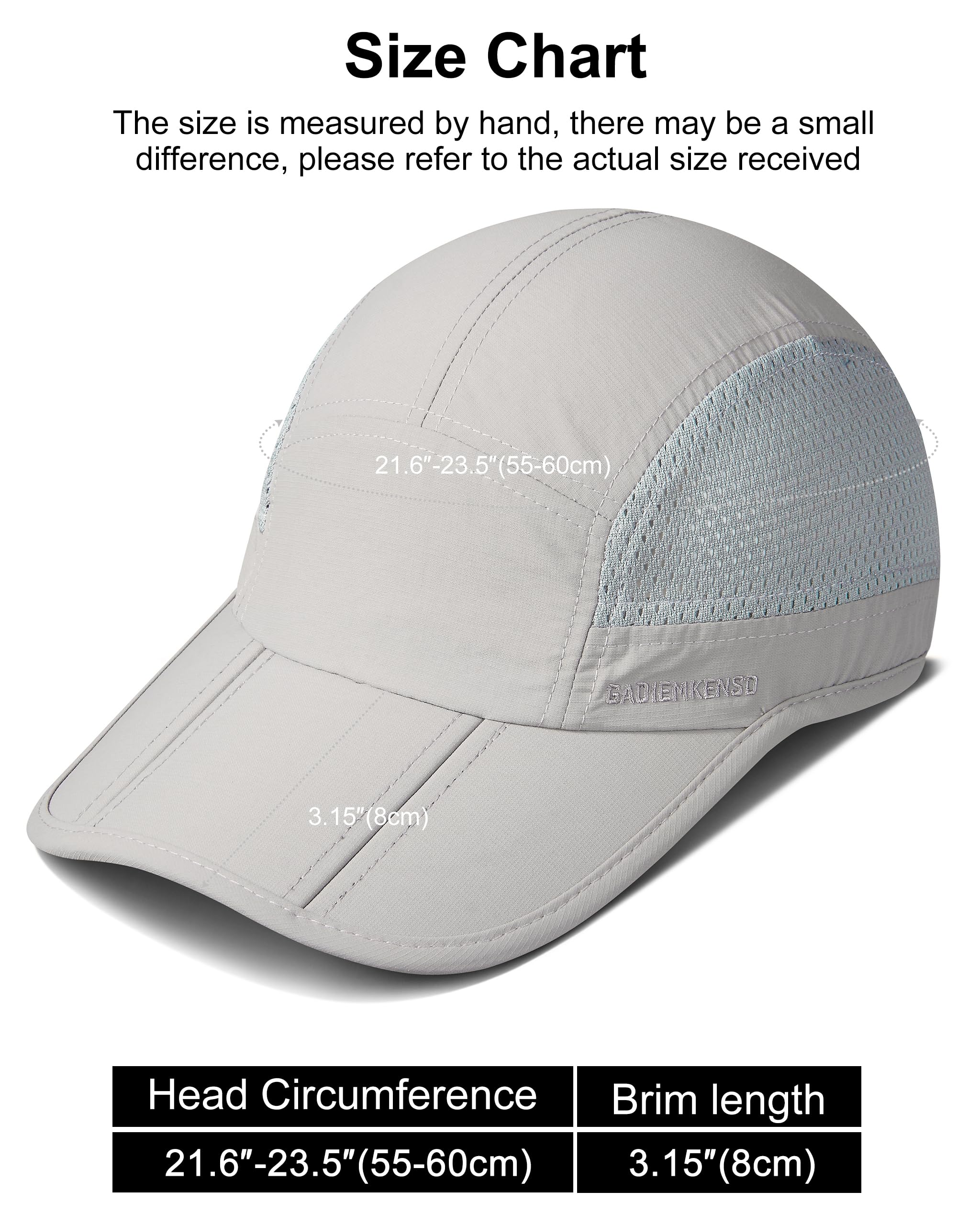 Unstructured Folding Outdoor Hat: Size best fit 21 5/8 - 23 1/2 inches, main fabric: 100% Nylon (thin fabric), mesh: 100% polyester, lightweight and quick dry. Suitable for: outdoor, fishing, hiking, traveling, mountaineering, camping, running, daily life and so on. Available in many different styles and looks, these perfect hats make an excellent gifting idea for your friends and loved ones