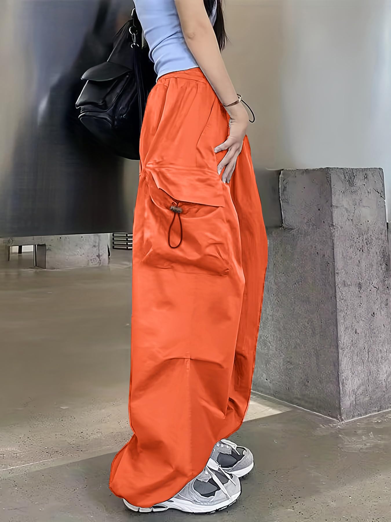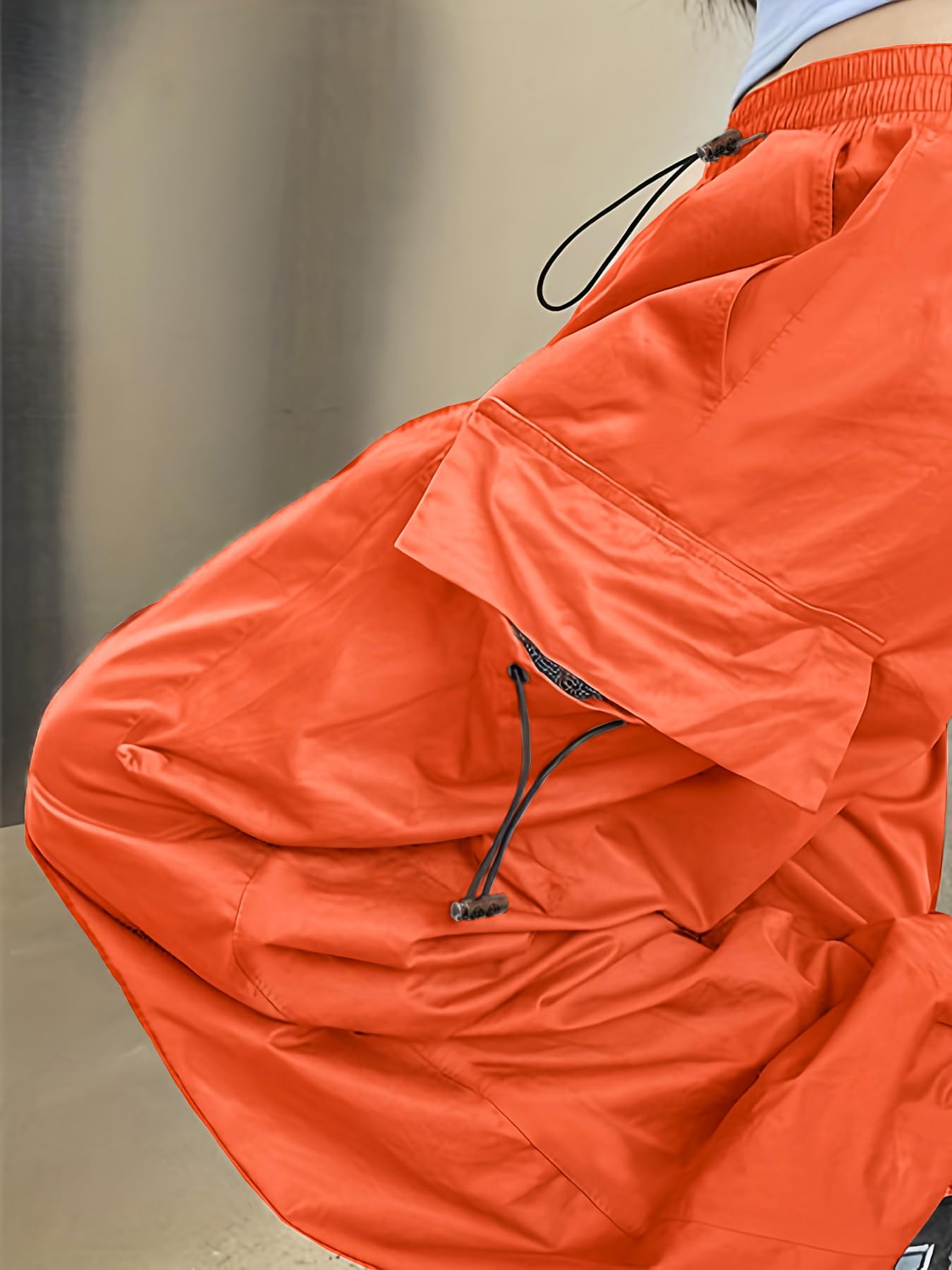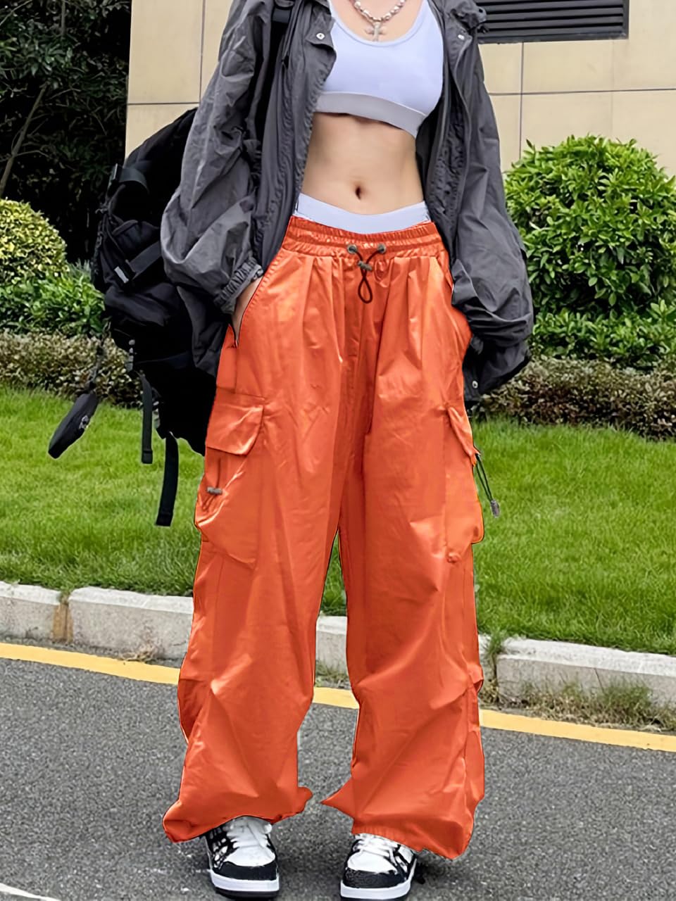 DESIGN: Baggy and Loose Fit . Five Drawstring Design ,2*Slant pockets and 2 Big Style Bag, Elastic Waist ,Y2K/Gothic/Hippie Style, Ruched Parachute Cargo Pants
