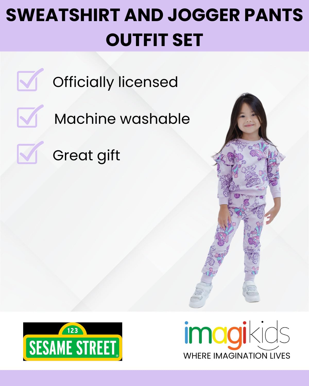 Officially licensed Sesame Street Abby Cadabby toddler girls long sleeve graphic sweatshirt and pants