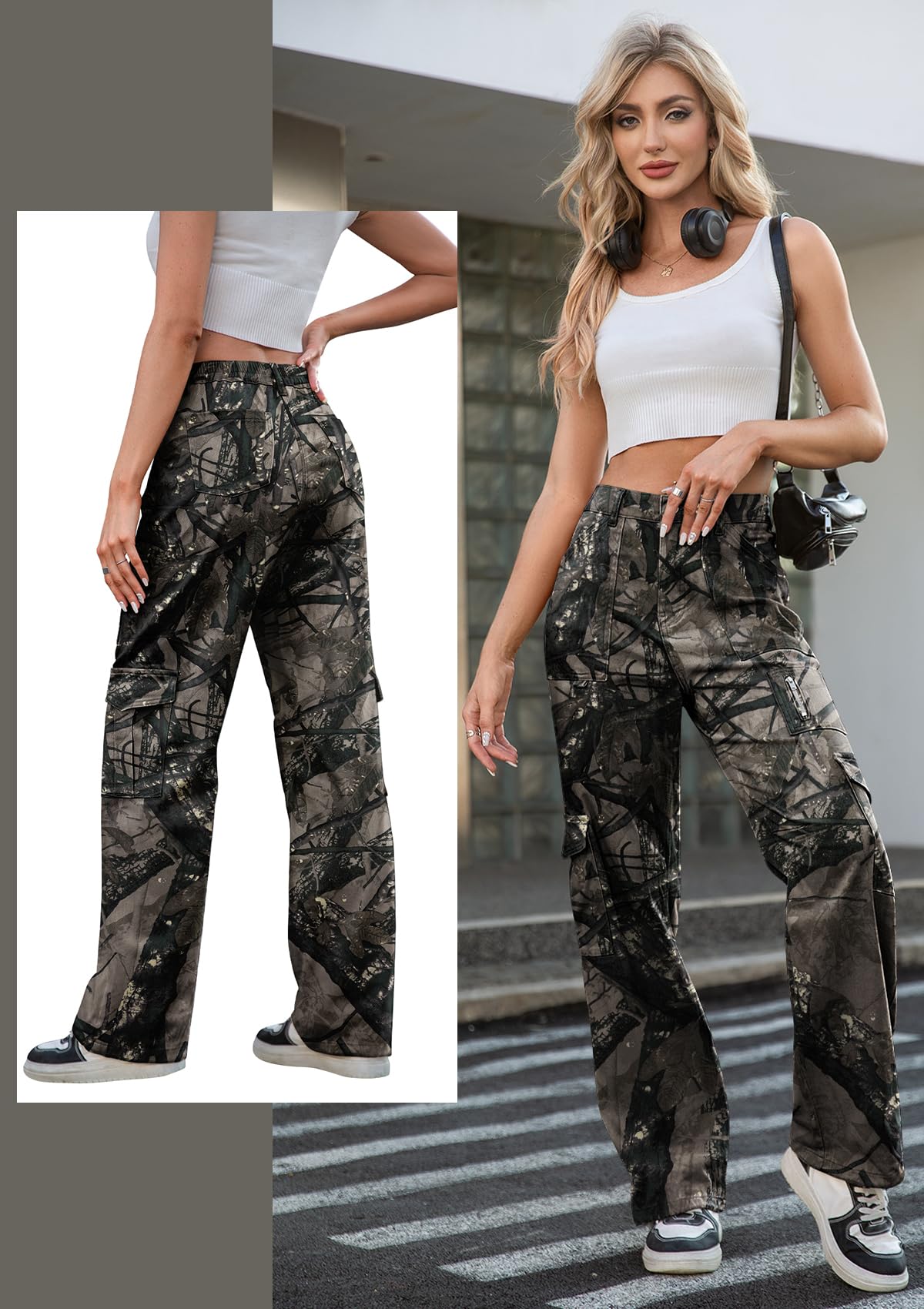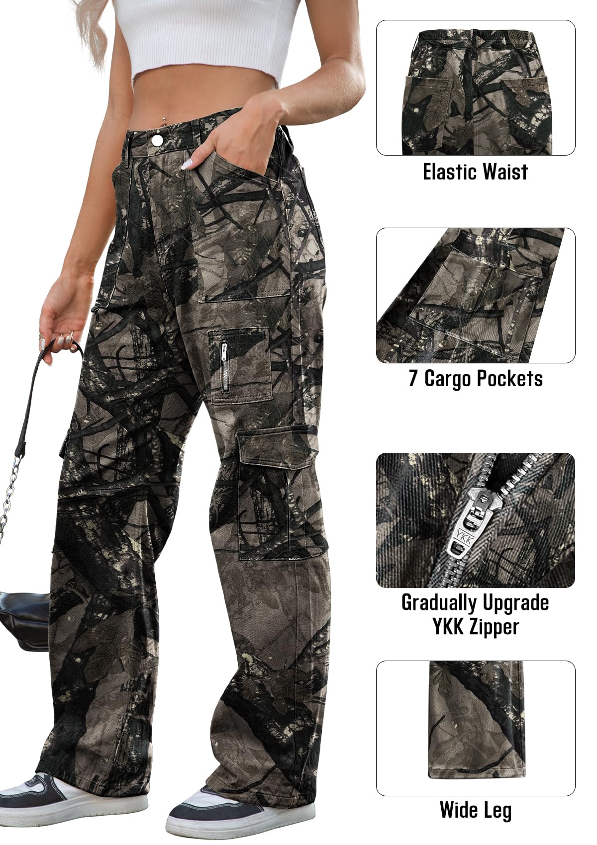 Unique Design: Women high waist cargo pants with pockets, elastic adjustable back waist, wide leg cargo pants, baggy cargo pants, 7 multi-function pockets, the zipper pocket on the right leg make you more stylish and street feel.
