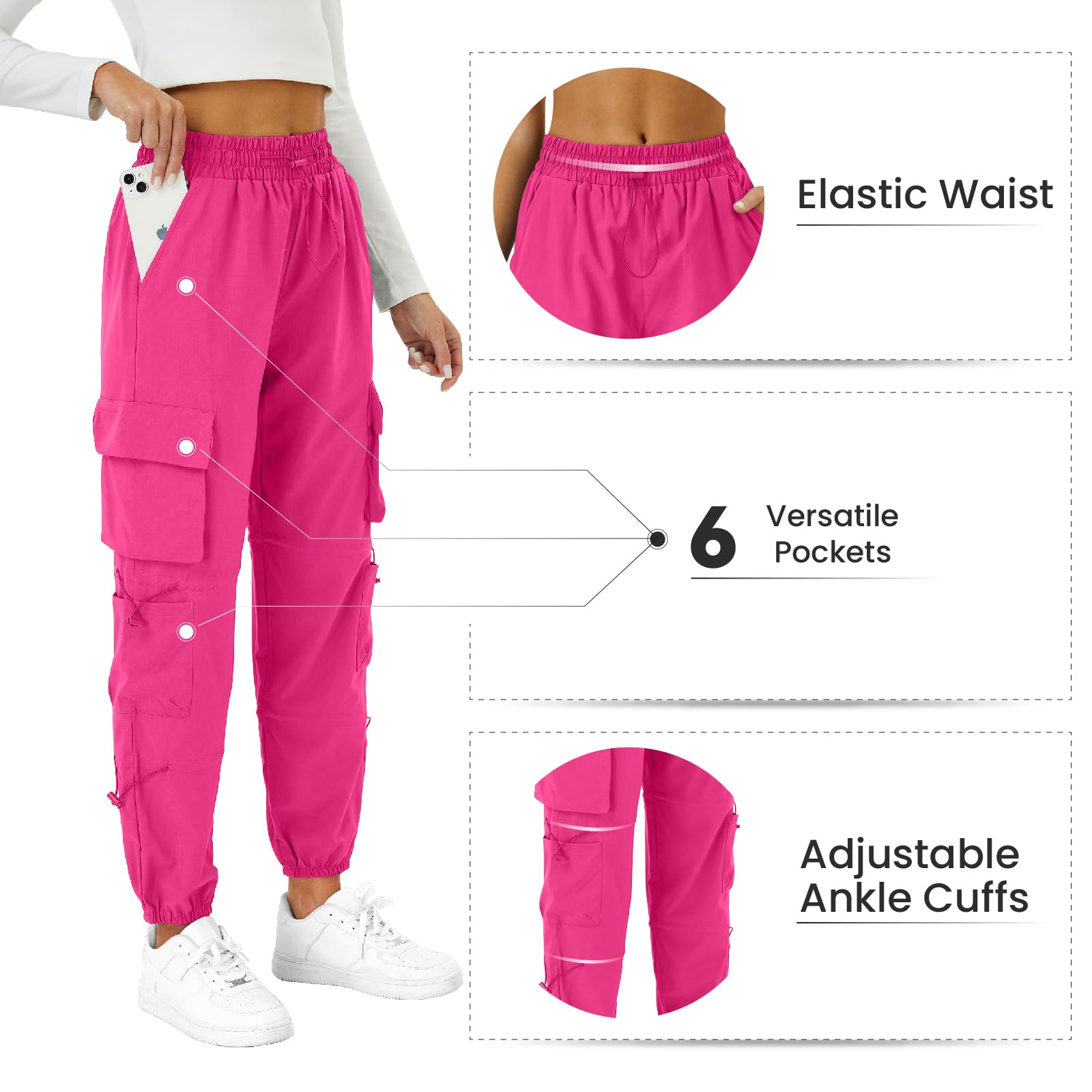 【Water-Resistant and Quick-drying】: The womens cargo pants is crafted from high-quality, lightweight fabric that offers exceptional comfort. The Water-Resistant pants with pockets features a Water-Resistant coating that effectively repels water and keeps you dry in wet conditions. The quick-drying fabric ensures that moisture is rapidly evaporated, allowing you to stay comfortable even when you encounter unexpected rain or sweat