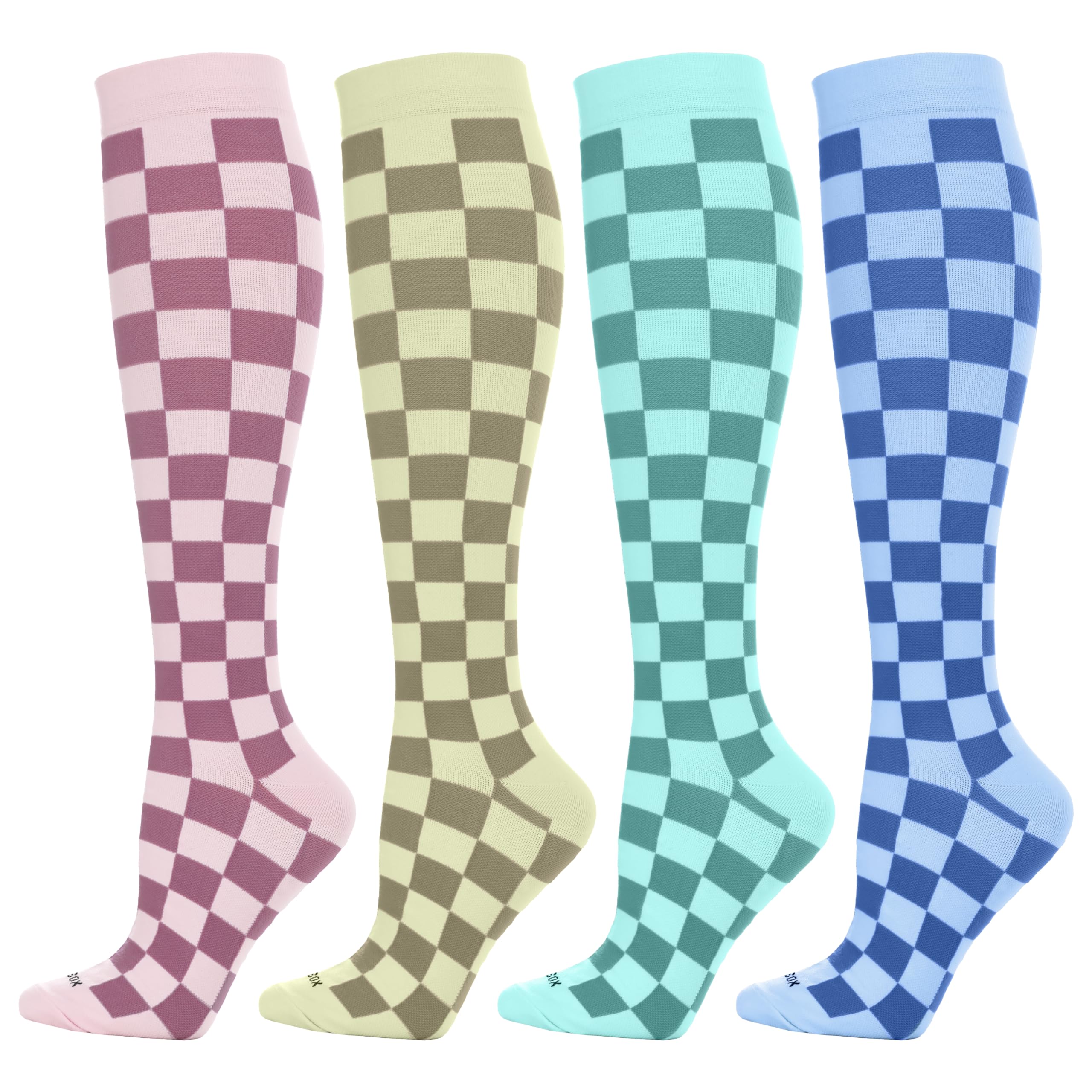 COMPRESSION SOCKS 20-30 mmHg. A Durable Compression Socks have wide variety of fun colors and designs specially for nurses, size rang cover both women and men. Double stitched with functional Fabric and knitted with seamless compression technology. Fits comfortable, easy to get on and delivers 360 degree support to feet and legs. Knee high long sleeves compression socks make sure the graduated support effect entire calf.