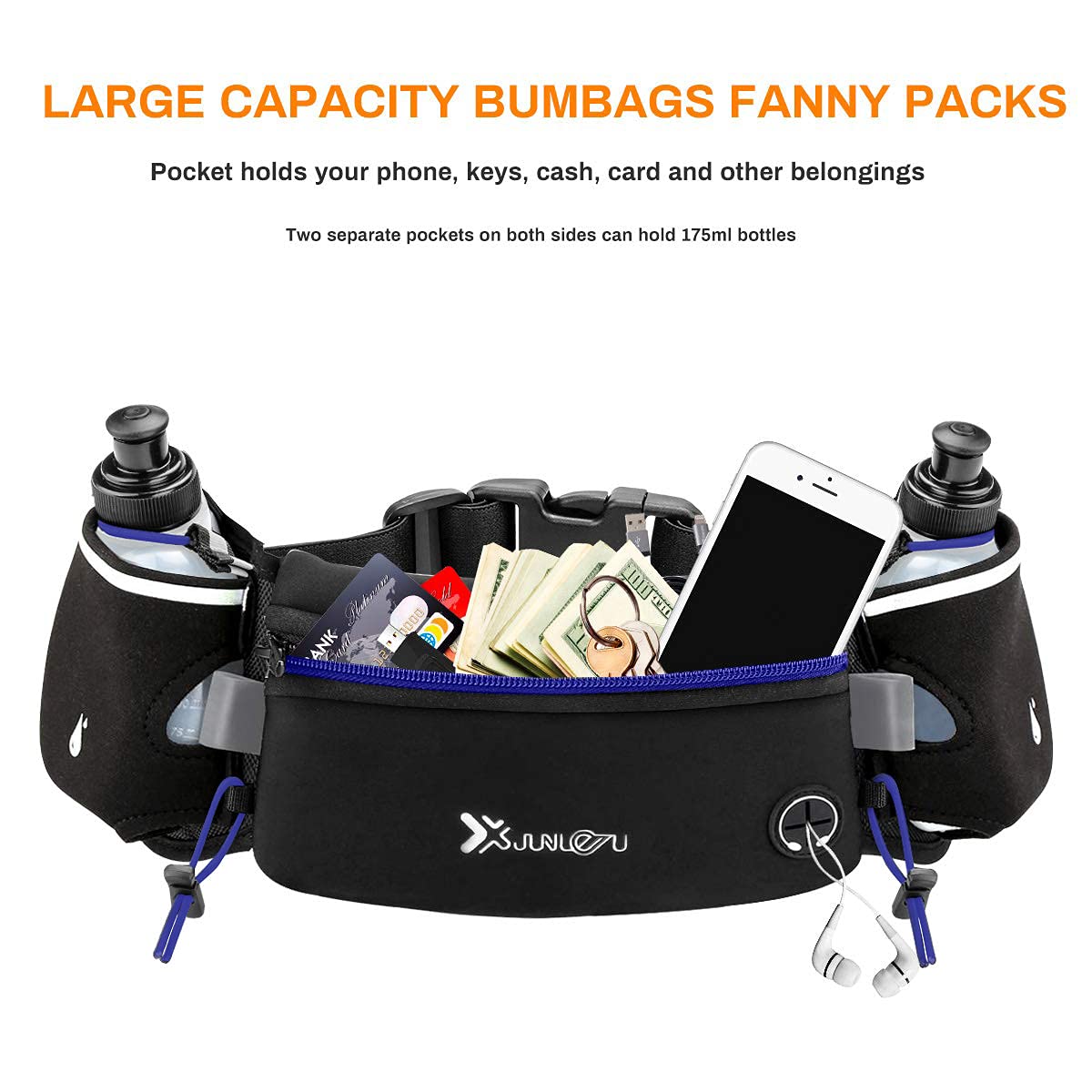 With Two Water Bottles Holder : As a bonus gift, we supply two BPA-free water bottles at 6.5 oz per bottle, so you'll have enough water for short to medium distance runs. Held in place with elastic attachments to prevent them falling out. The design allows you to easily remove the bottles from pockets.