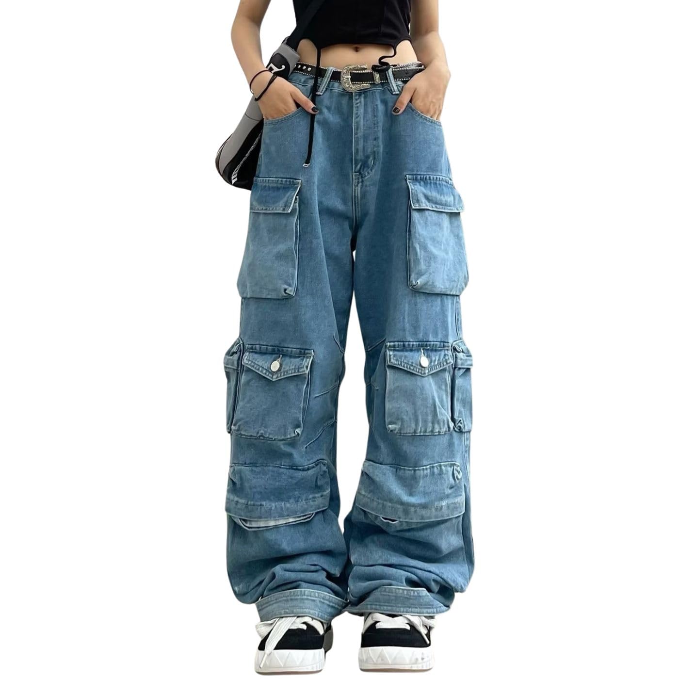 Features:Cargo jeans/baggy cargo pants for women girls/low waisted jeans for women/y2k jeans/streetwear women/girls jeans/star jeans for women