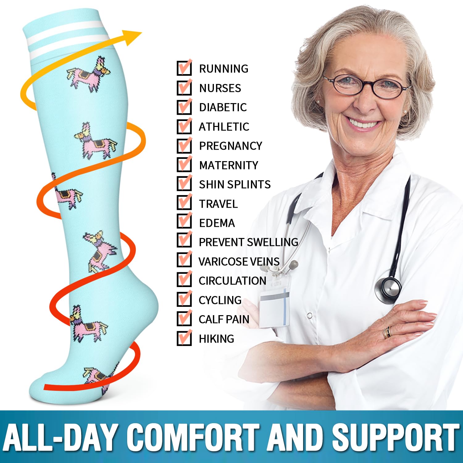 GIFT IDEA & SATISFACTION GUARANTEED- What's more commendable is ...this is a very suitable compression socks for sharing,a variety of styles,suitable for all kinds of people,you can give them as a gift to your friends,families.It has universal applicability,no matter outside or inside,you can benefit enormously from our progressive compression technology.RISK free,if you are not happy with the purchase for any reasons,contact us for an exchange or refund with no questions asked.
