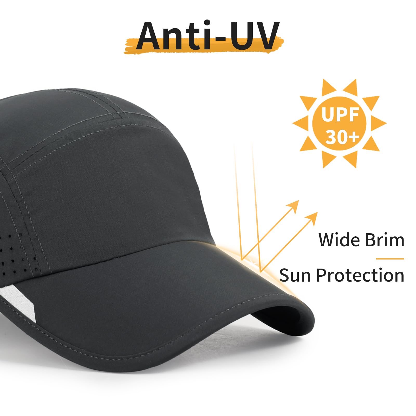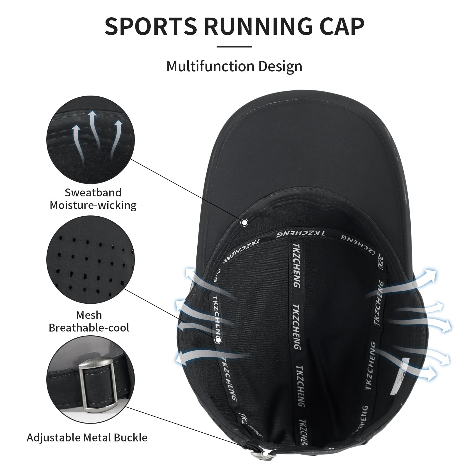 ☀ COOL SPORTS CAP: The inner band of our cooling athletic running hats is a multi-layer dynamic system that continuously pulls moisture from your forehead for quick evaporation, to stop the sweat from dripping into your eyes. The two-side mesh design allows for moisture and heat to easily escape these caps, which not only keeps your cap cool, but you’ll also stay dry.
