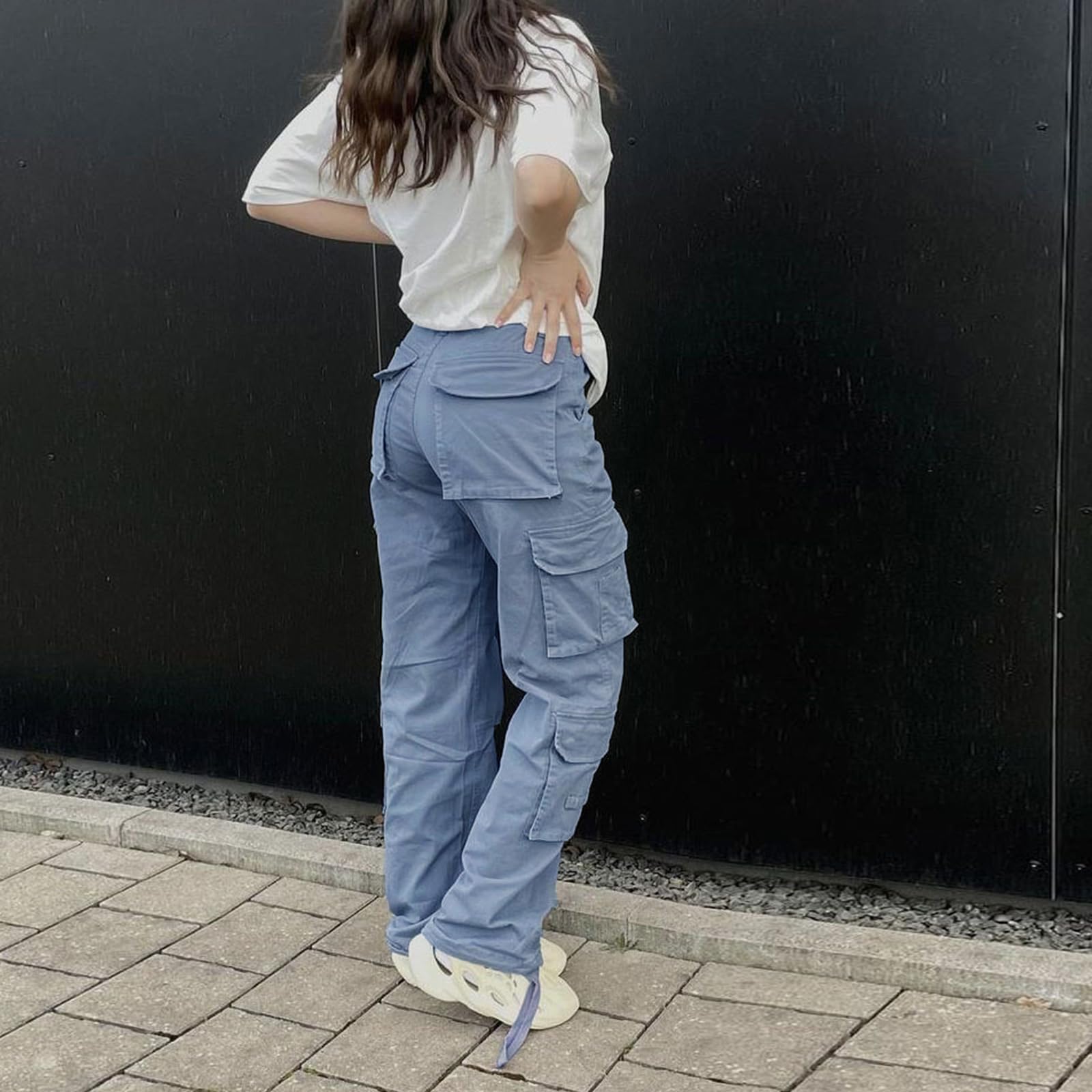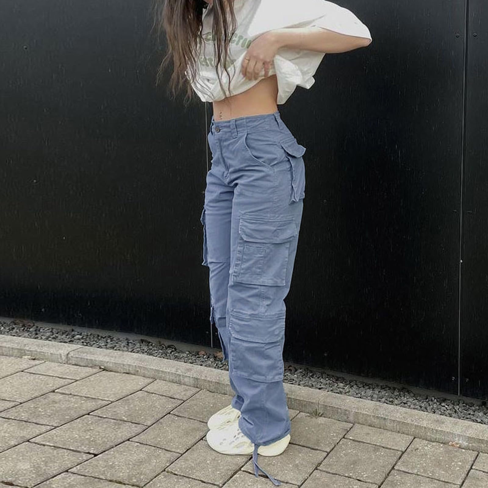 Features: fashion y2k straight wide leg baggy pants, casual high waist designed with flap pockets, straight leg cutting with drawsytring hem, zipper fly-button closure, y2k style, relaxed fit cargo pants, classic but trendy, better to shape your carves.