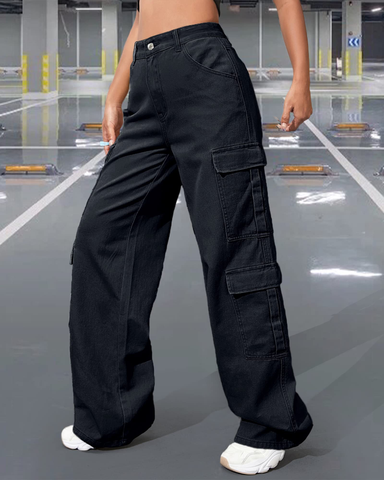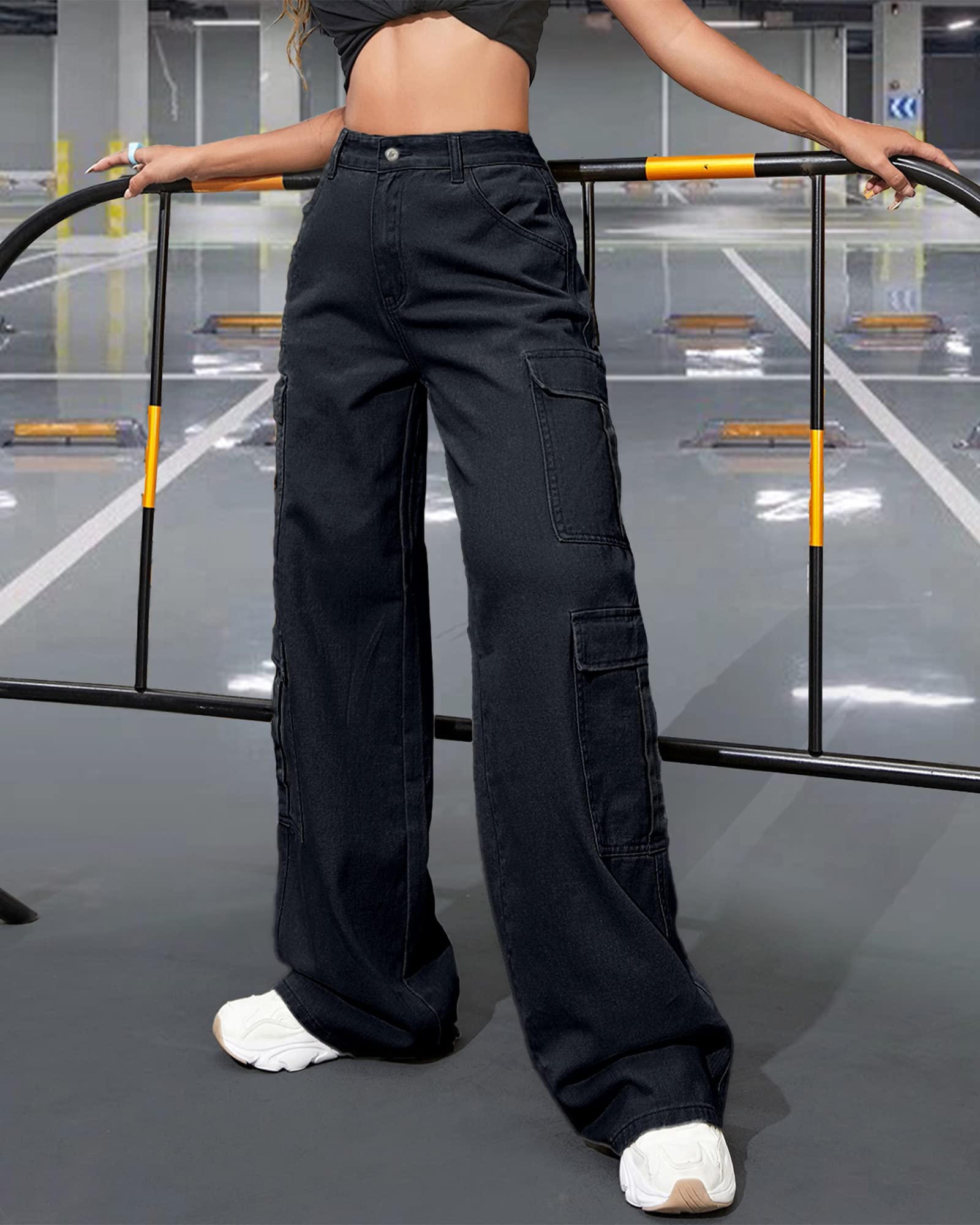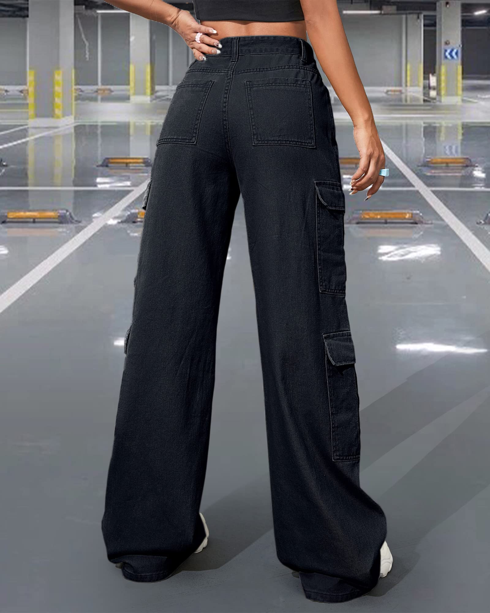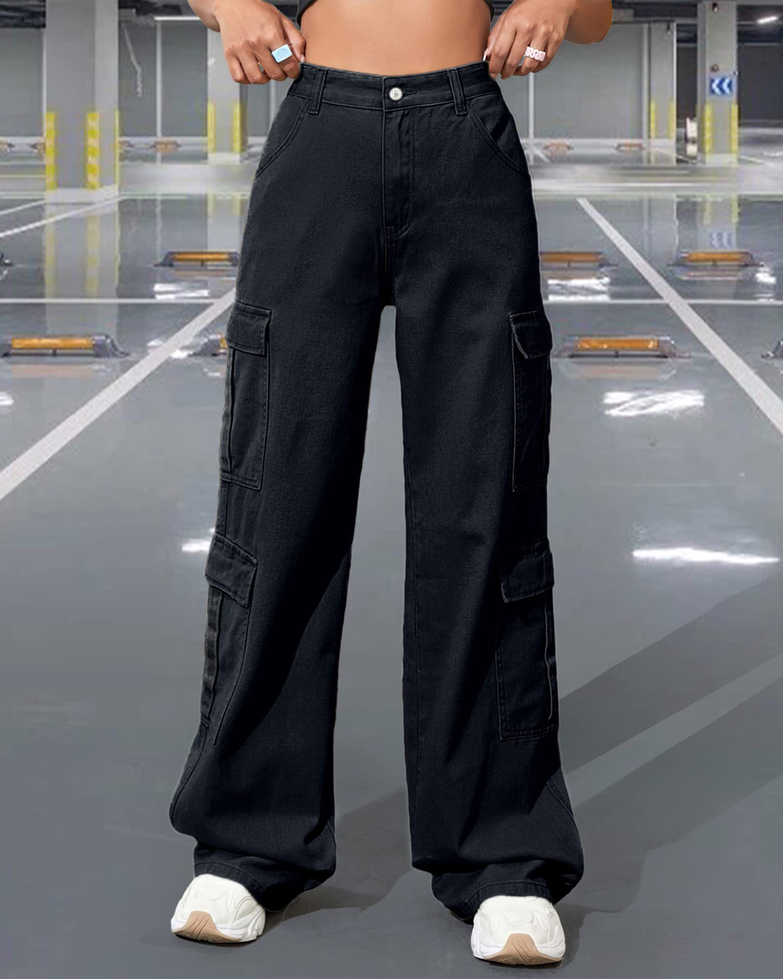 【High Waisted Cargo Jeans Features】: High waist, wide straight leg,6 pocket styling paired with an on-trend wide leg and two side flap pocket , zipper closure, straight leg wide-leg jeans fit any body type, vintage cargo jeans will make you look fashion, It is a good Y2K Streetwear Pants