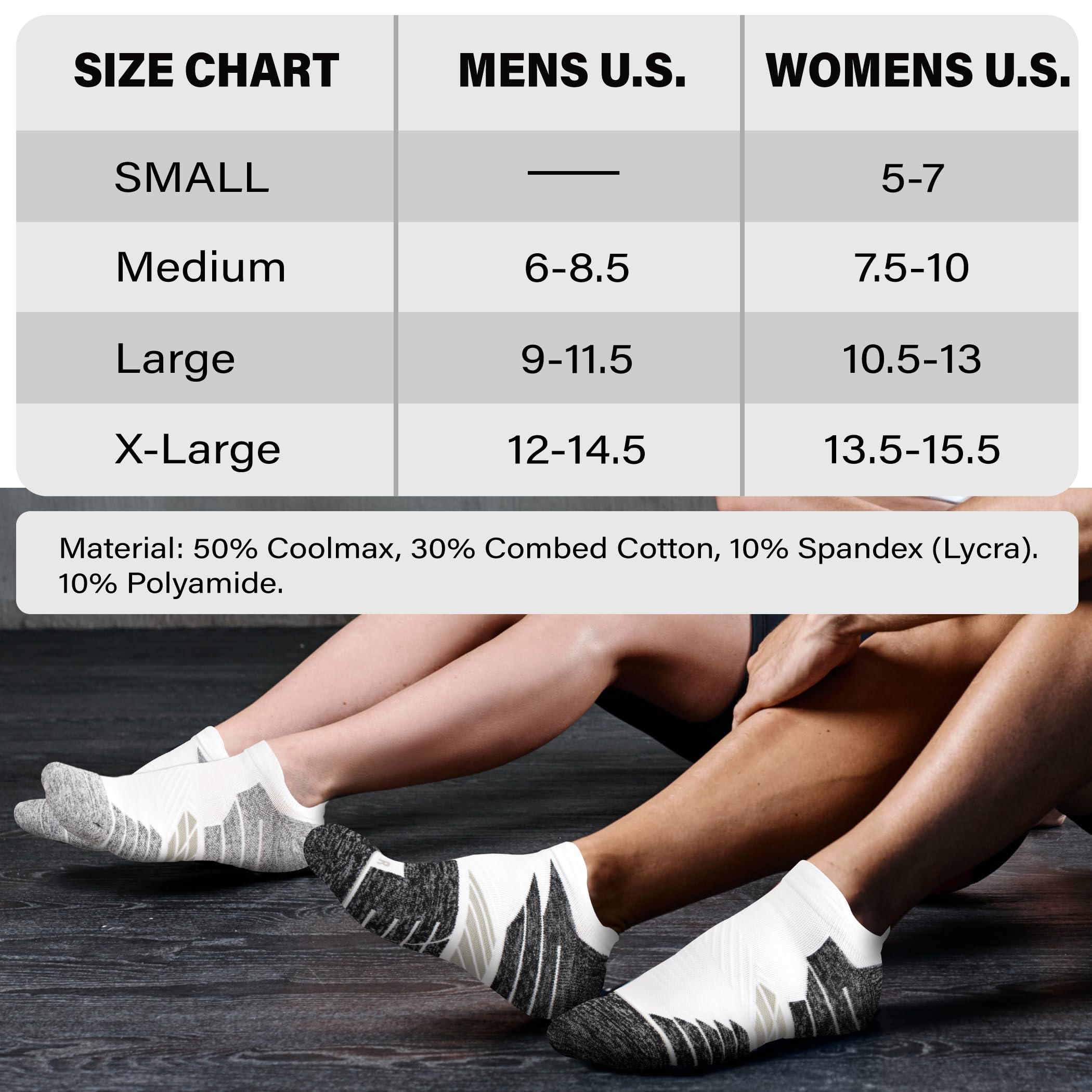 No Show Breathable Socks: Mesh ventilation construction on instep makes sure brethability. Great for many sports or casual wear, such as running, golf, tennis, gym etc. Performance socks with low ankle design feature and light compression match most of your shoes, while high enough to protect your ankle