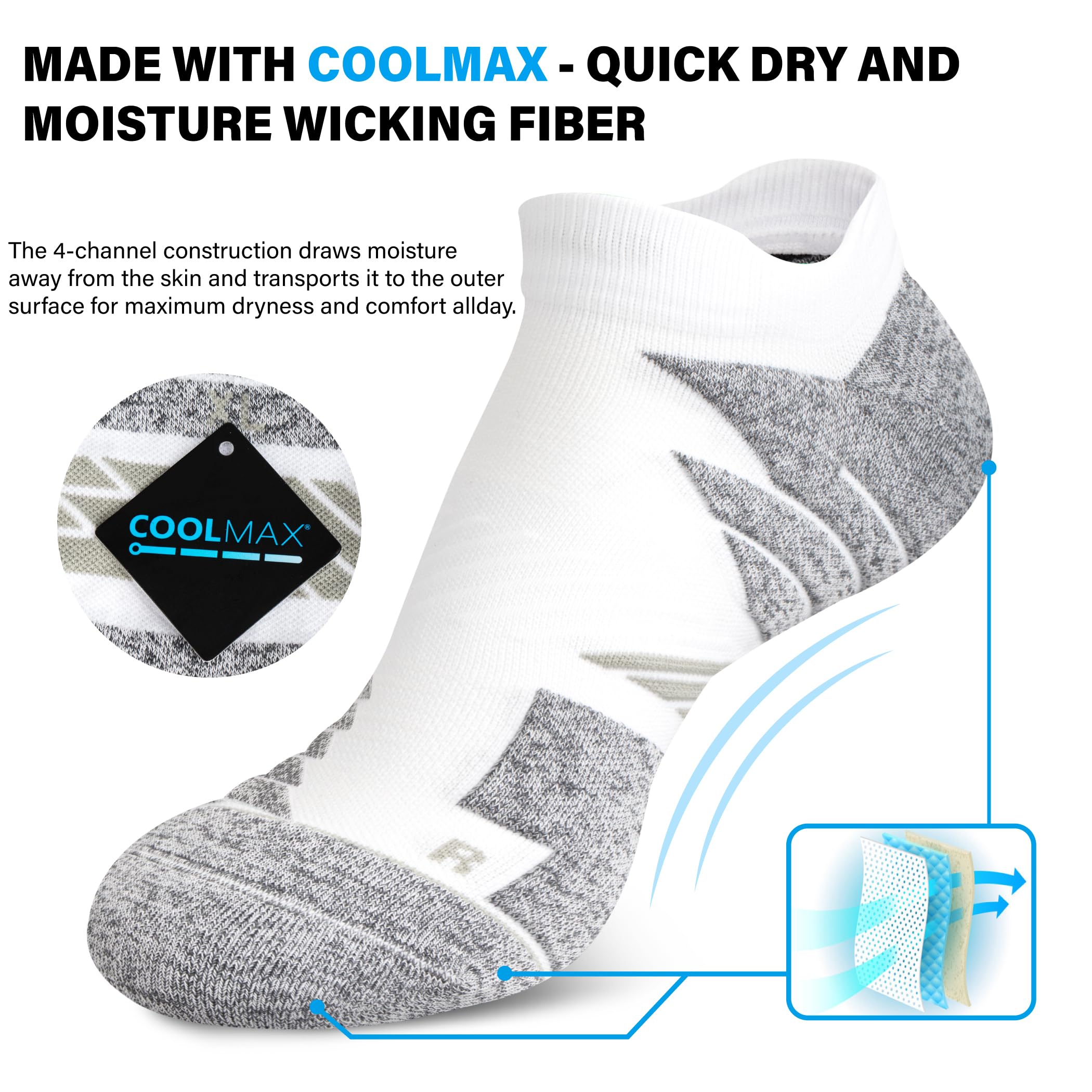Anti odor and Moisture Wicking Socks: Made from high-end moisture control and quick dry CoolMax fiber, Our workout socks move perspiration away effectively from skin surface so as to keep feet fresh and dry. Nice anti-Odor and anti-blister short socks help you avoid embarrassment