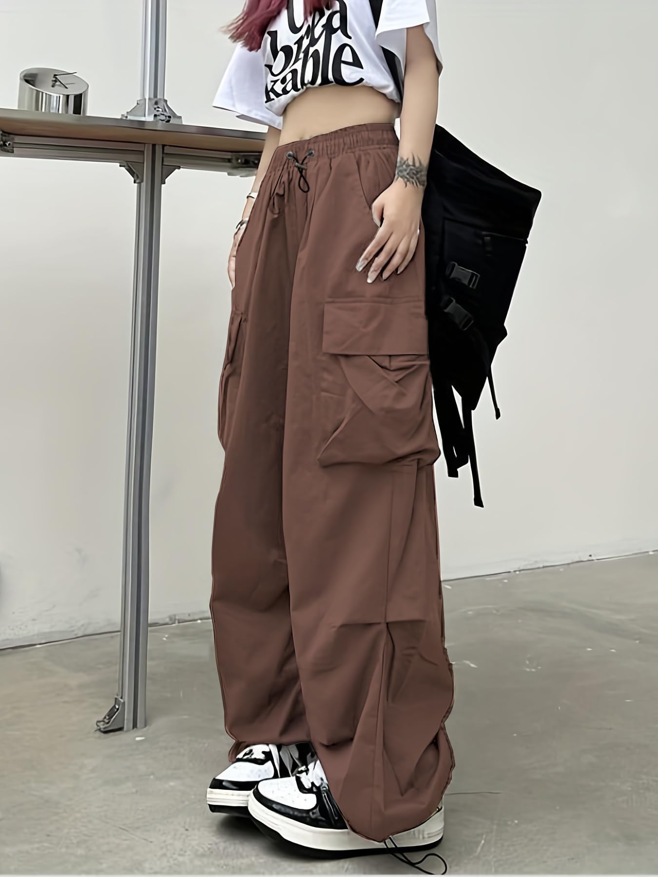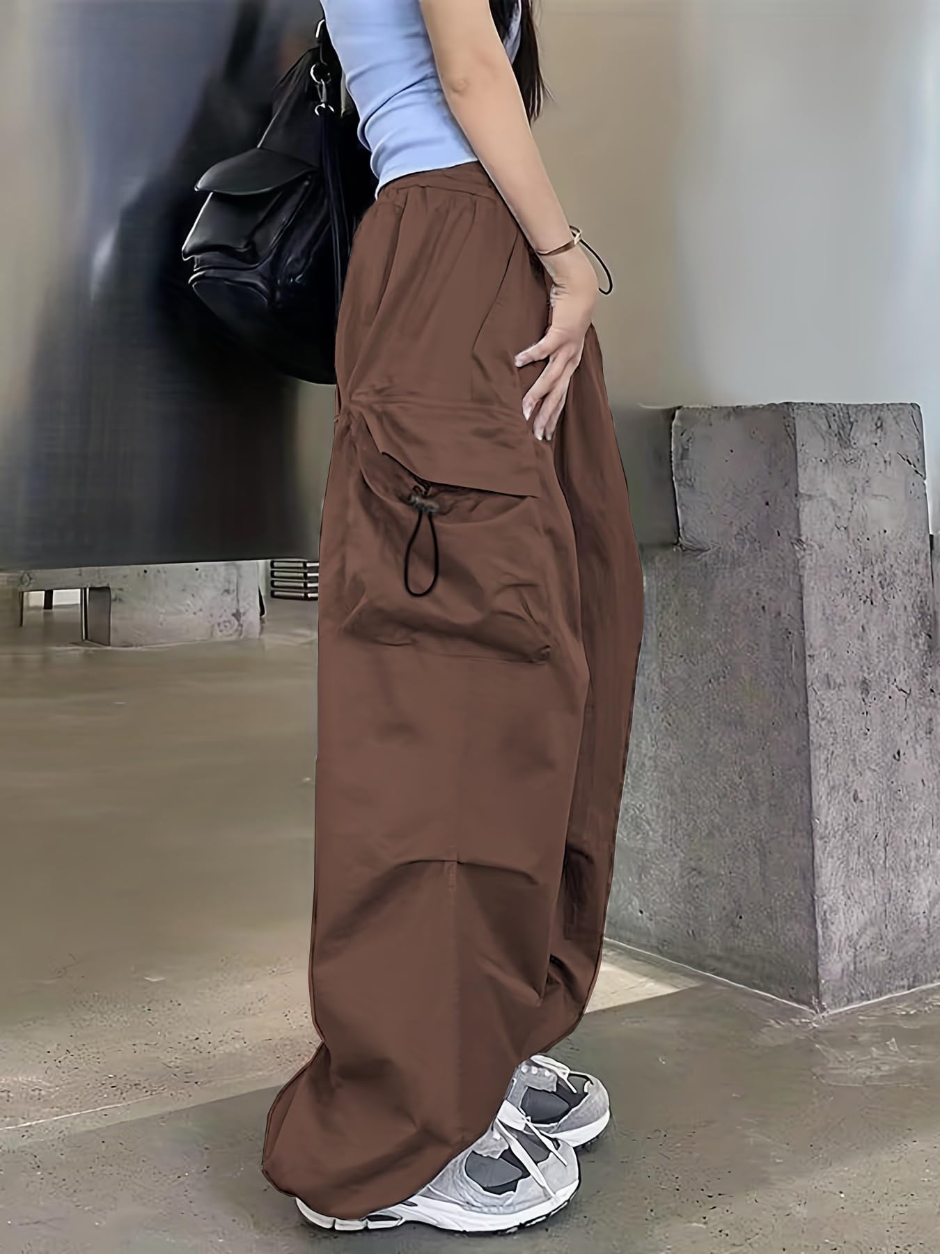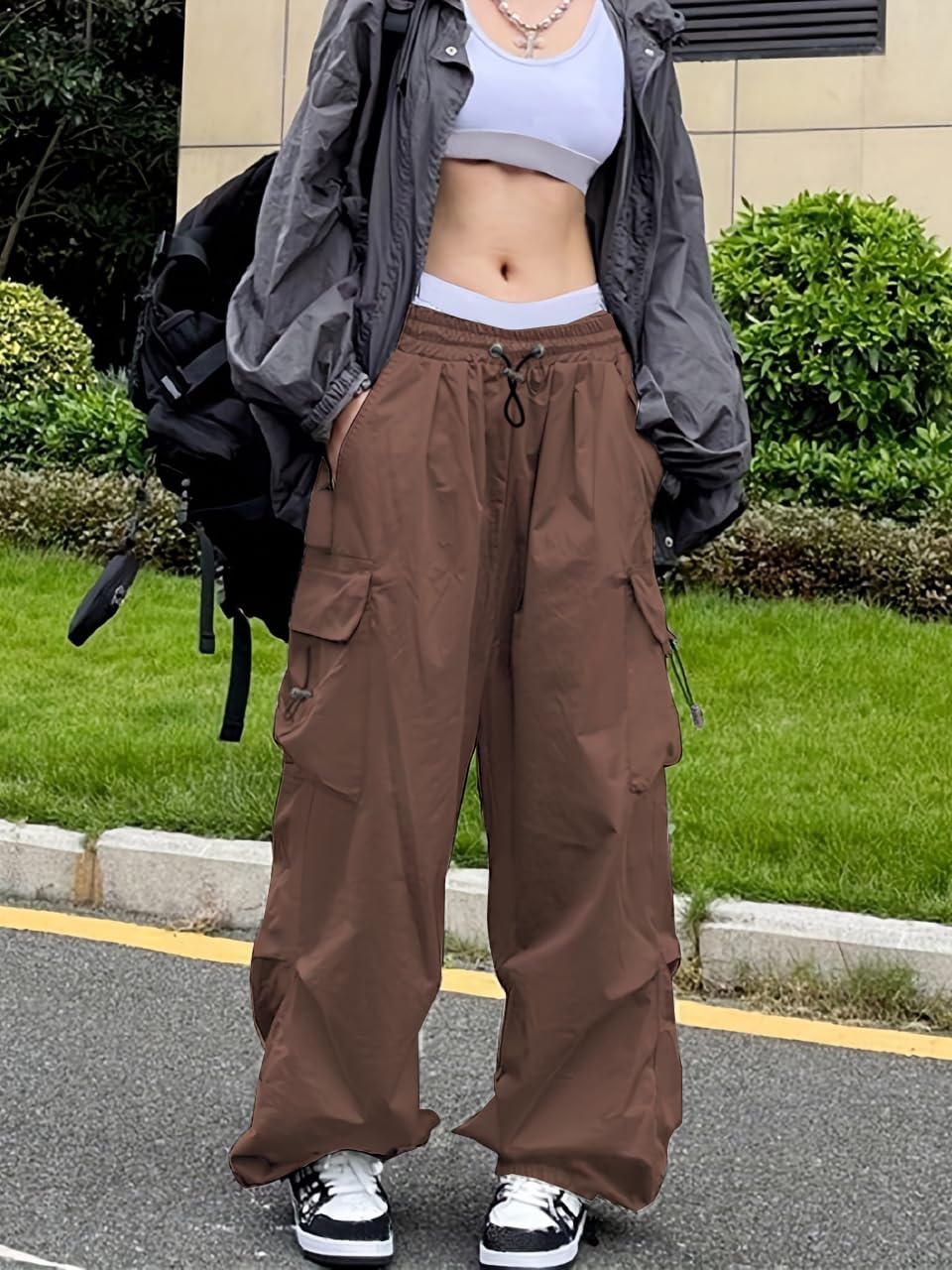 DESIGN: Baggy and Loose Fit . Five Drawstring Design ,2*Slant pockets and 2 Big Style Bag, Elastic Waist ,Y2K/Gothic/Hippie Style, Ruched Parachute Cargo Pants