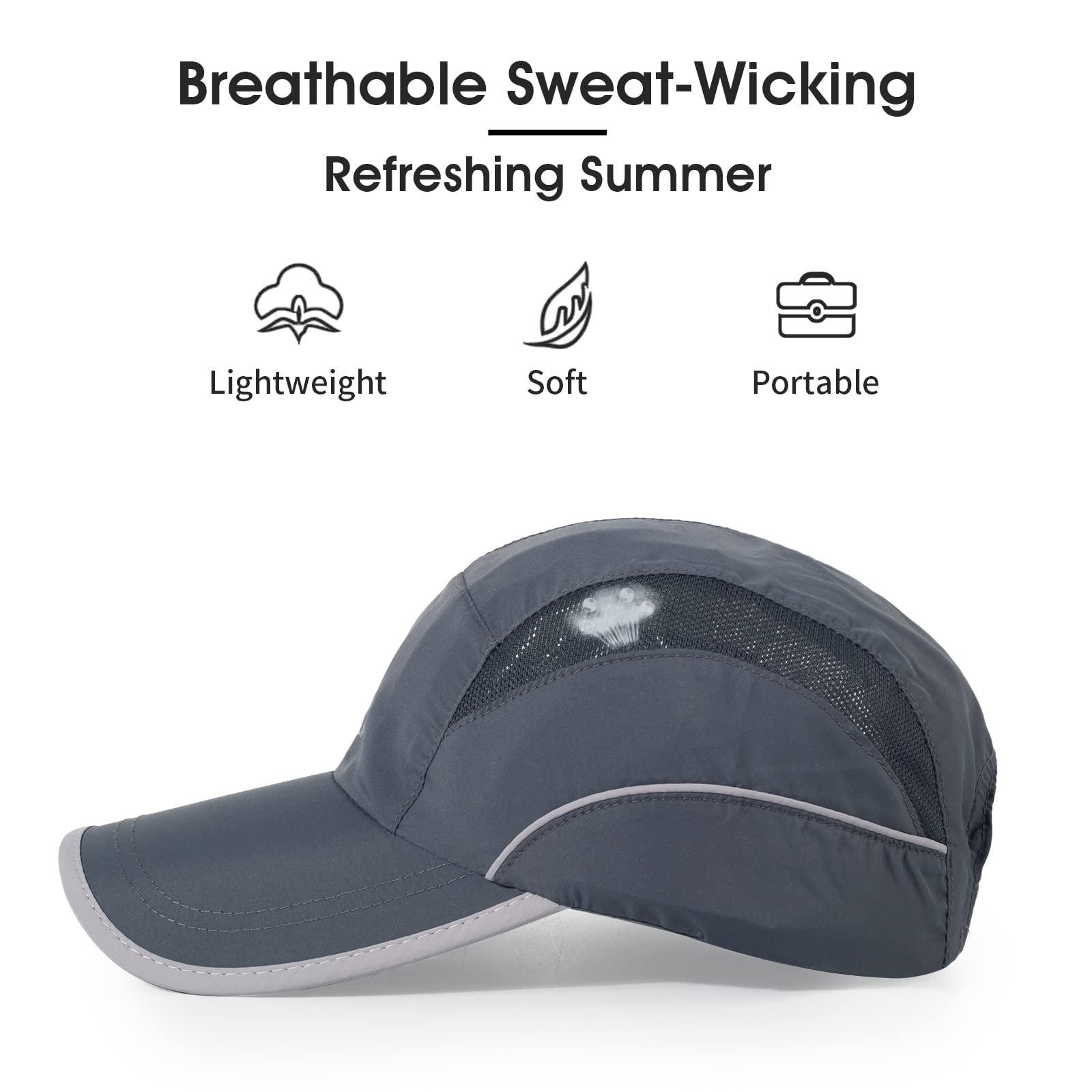 ☀LIGHTWEIGHT & BREATHABLE: Polyester hats, are made of thin soft, and light material, the mesh design makes the hat more breathable. This thin and light running cap is only 0.37g, making it very comfortable and easy to store, take it with you everywhere, and will not occupy too much space, these baseball caps are an outdoors and hiking essential!