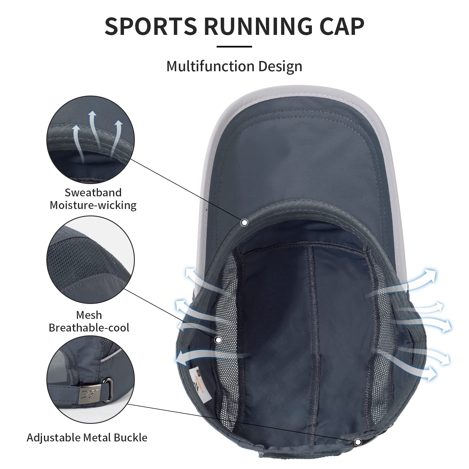 ☀ COOL SPORTS CAP: The inner band of our cooling athletic running hats is a multi-layer dynamic system that continuously pulls moisture from your forehead for quick evaporation, to stop the sweat from dripping into your eyes. The two-side mesh design allows for moisture and heat to easily escape these caps, which not only keeps your cap cool, but you’ll also stay dry.