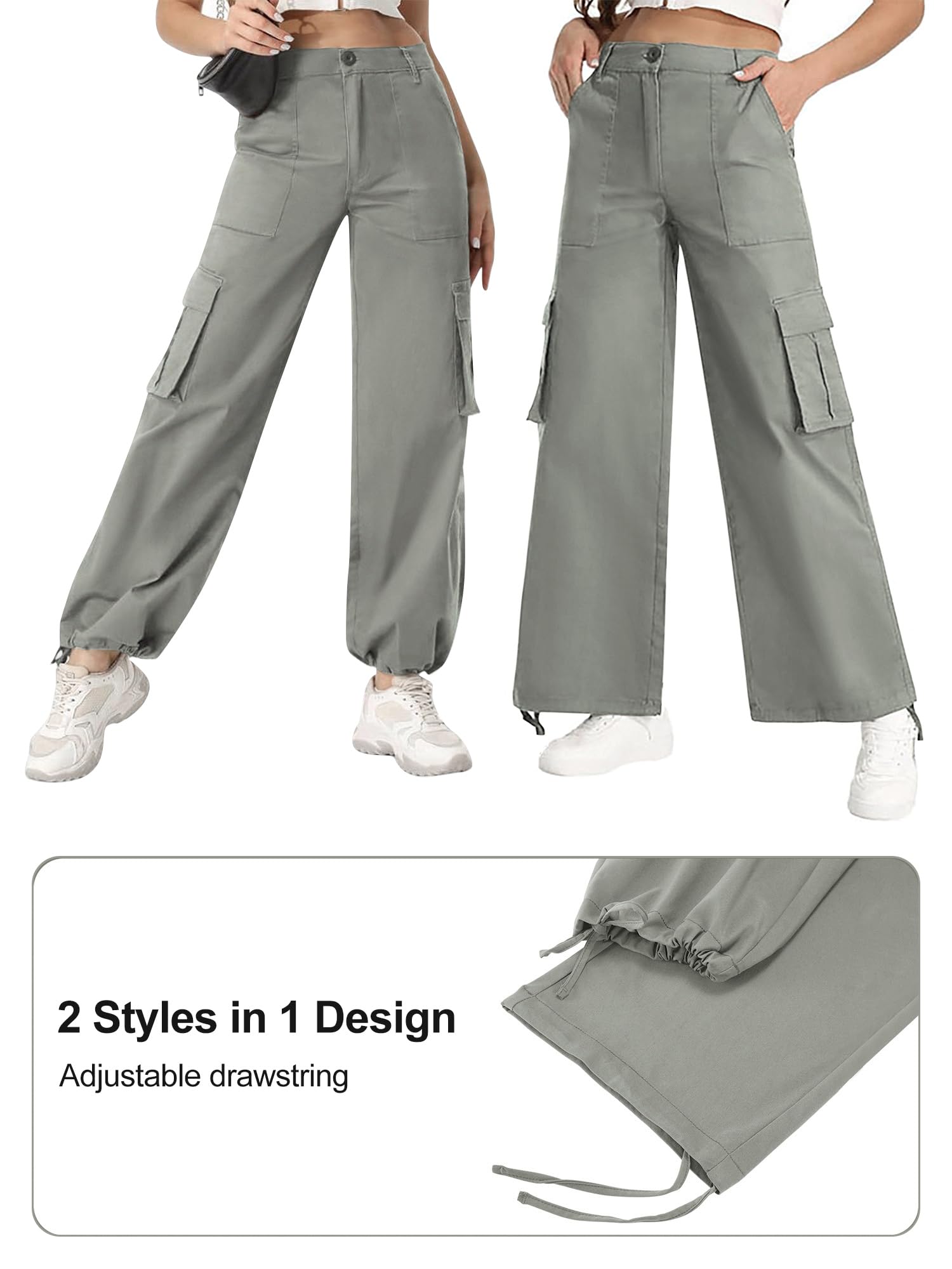 WIDE LEG & TAPERED LEG: These baggy cargo pants can be worn straight or cinched at the bottom for a tapered, jogger-like fit. The wide leg cargo pants for women have a relaxed shape that keeps the look and feel casual. Pull and tie the drawstring at the hems could change the shape, being a jogger-style cuffs for a clean stride
