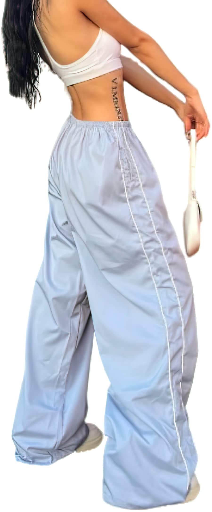 Parachute pants for women, drawstring elastic high waist pants, two side pockets, cargo pants women baggy with pockets, Y2K wide leg baggy relaxed pants trousers, hip hop pants for women dance