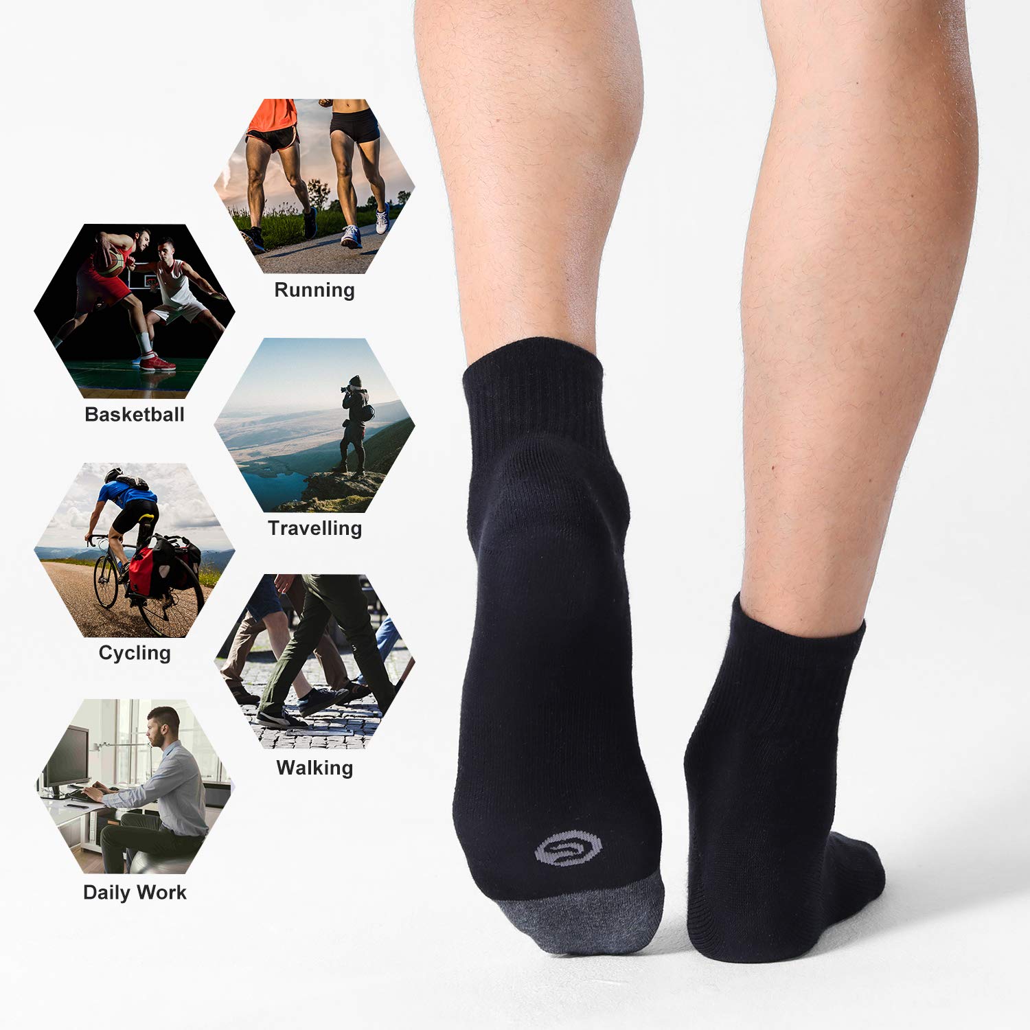 Dry & Breathable: These moisture-wicking mens ankle socks are designed for running and exercising. Mesh in the instep and towel-fabric on sole part can make sure your feet breathe well and keep dry all the day.