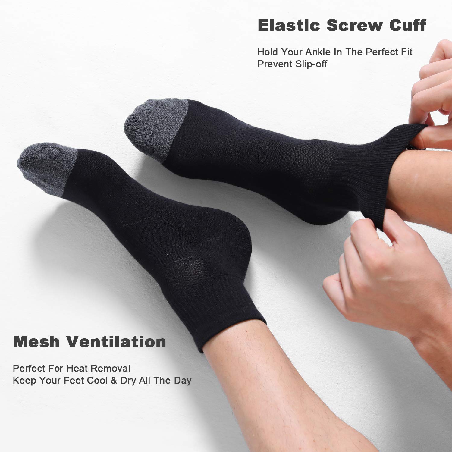 Non-slip: These athletic socks with arch support provide good elastic stretch, holding socks stay in place when you doing sports or walking, running, etc, thence saying goodbye to slippery dilemmas!