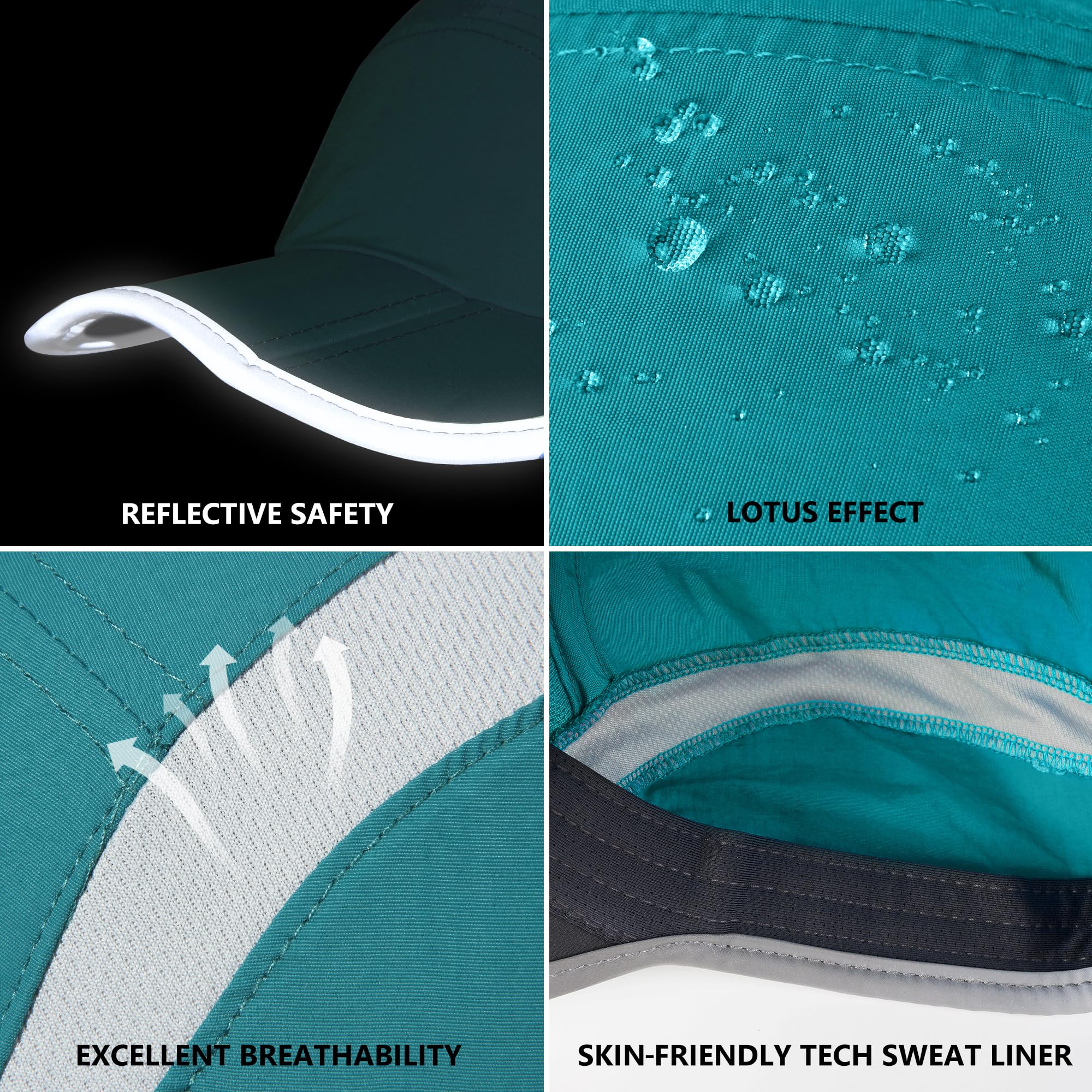 Reflective Foldable Brim: The brim with 3-panel bill design, can be folded and fit into any pocket or backpack. Reflective Brim for increased visibility and safety on low-light runs