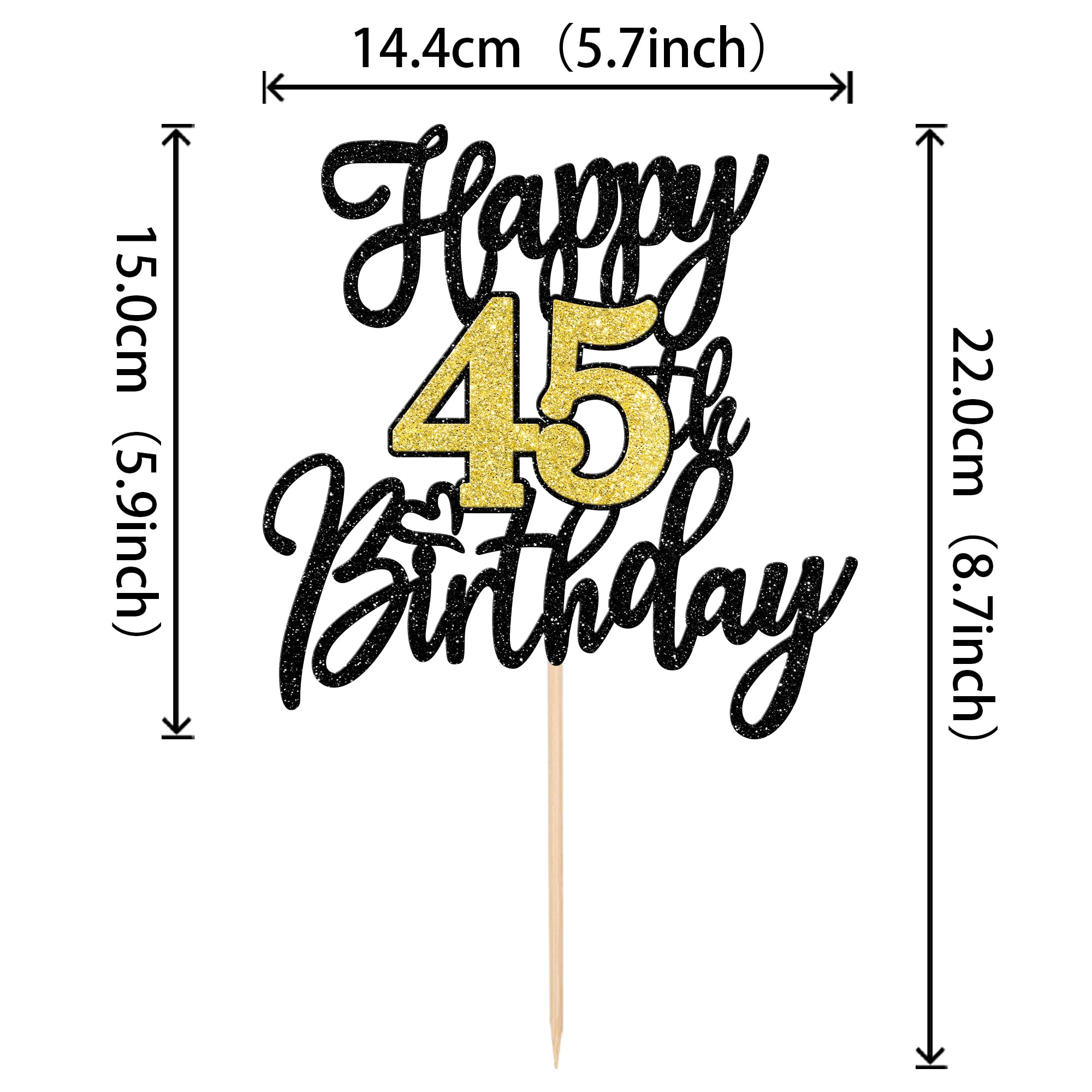 Happy 45th Birthday Cake Topper for Cheers to 45 Years 45 Fabulous Happy 45th Birthday Anniversary Theme Party Cake Decorations Supplies. perfect for happy 45th birthday theme party, cheers to 45 years theme party, 45 fabulous theme party, happy 45th birthday anniversary theme party cake decorations supplies Pack of 1 pcs. The size is W 5.7 inch * H 8.7 inch / W 14.4 cm * H 22 cm ( with stick ) Made of high quality paper card stock and food grade sticks,thick and sturdy. This cake topper is one side glitter, another side is white, and this is intended for decoration only, please do not put them in oven or microwave. If the item you received has any defects, please contact us for refund.we will deal with it within 24 hours.