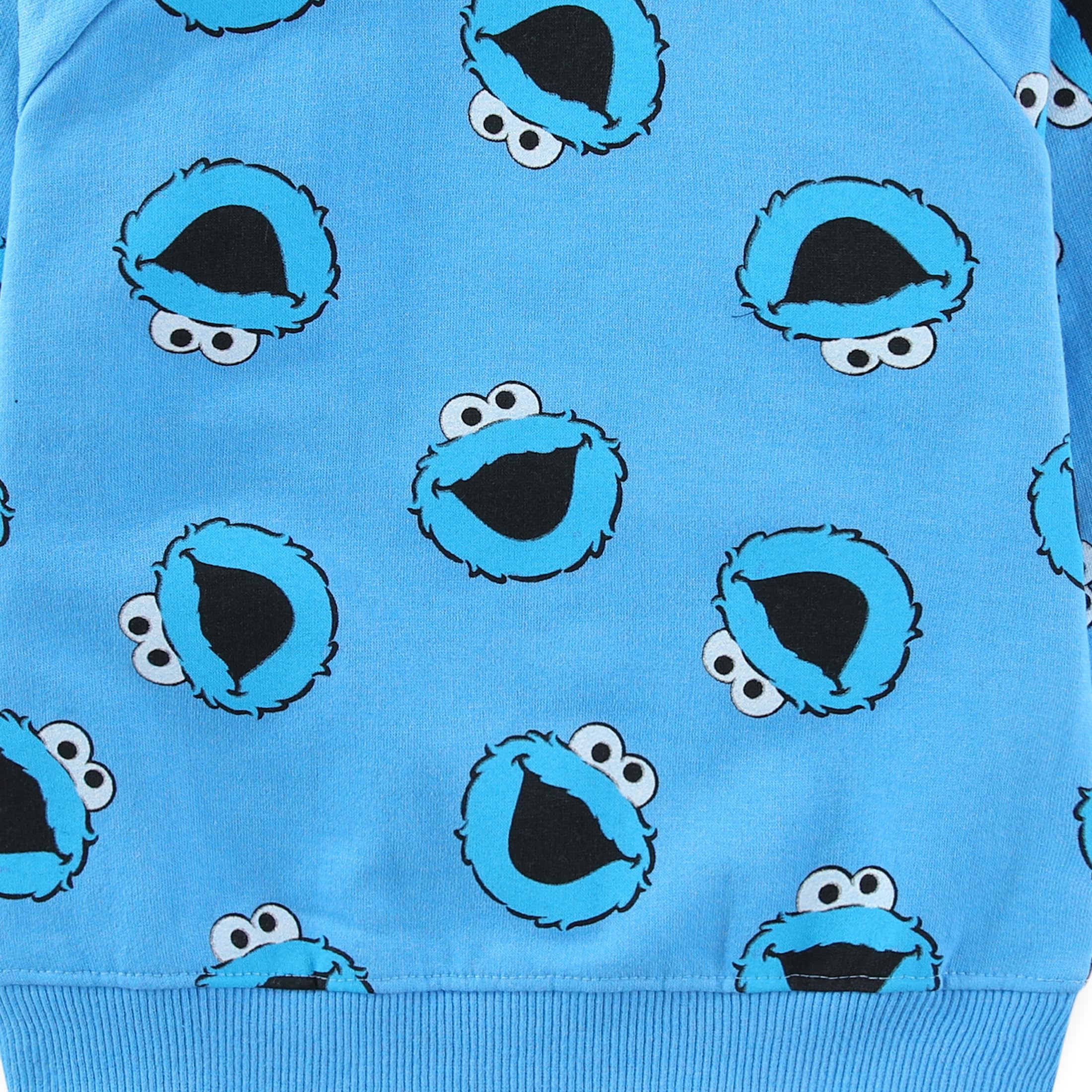 Choose Between One Cute Elmo and Cookie Monster All Over Print Grey Long Sleeve Shirt and One Matching Elmo and Cookie Monster All Over Print Matching Grey Pants, One Comfy Cookie Monster All Over Print Long Sleeve Shirt and One Matching Cookie Monster All Over Print Blue Pants or One Stylish Elmo All Over Print Grey Long Sleeve Shirt and One Matching Elmo All Over Print Pants