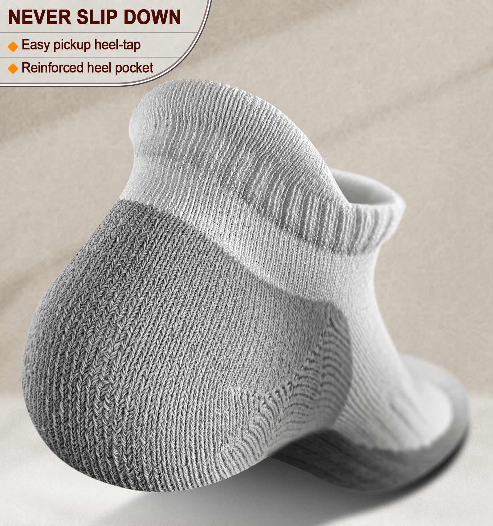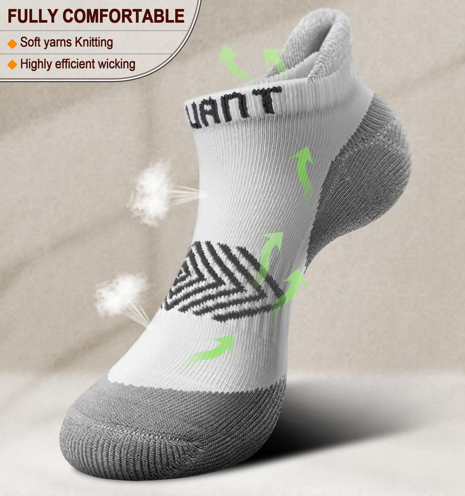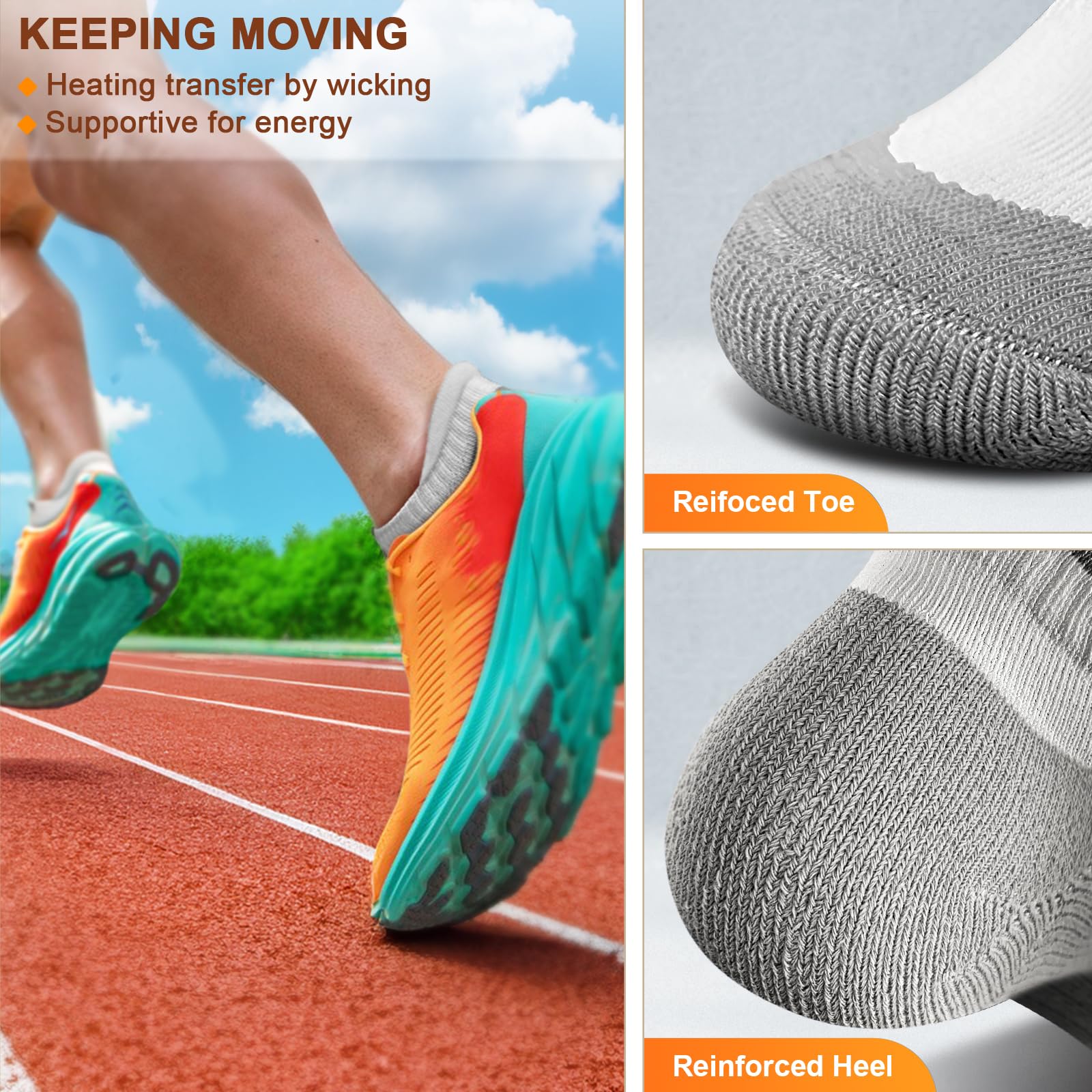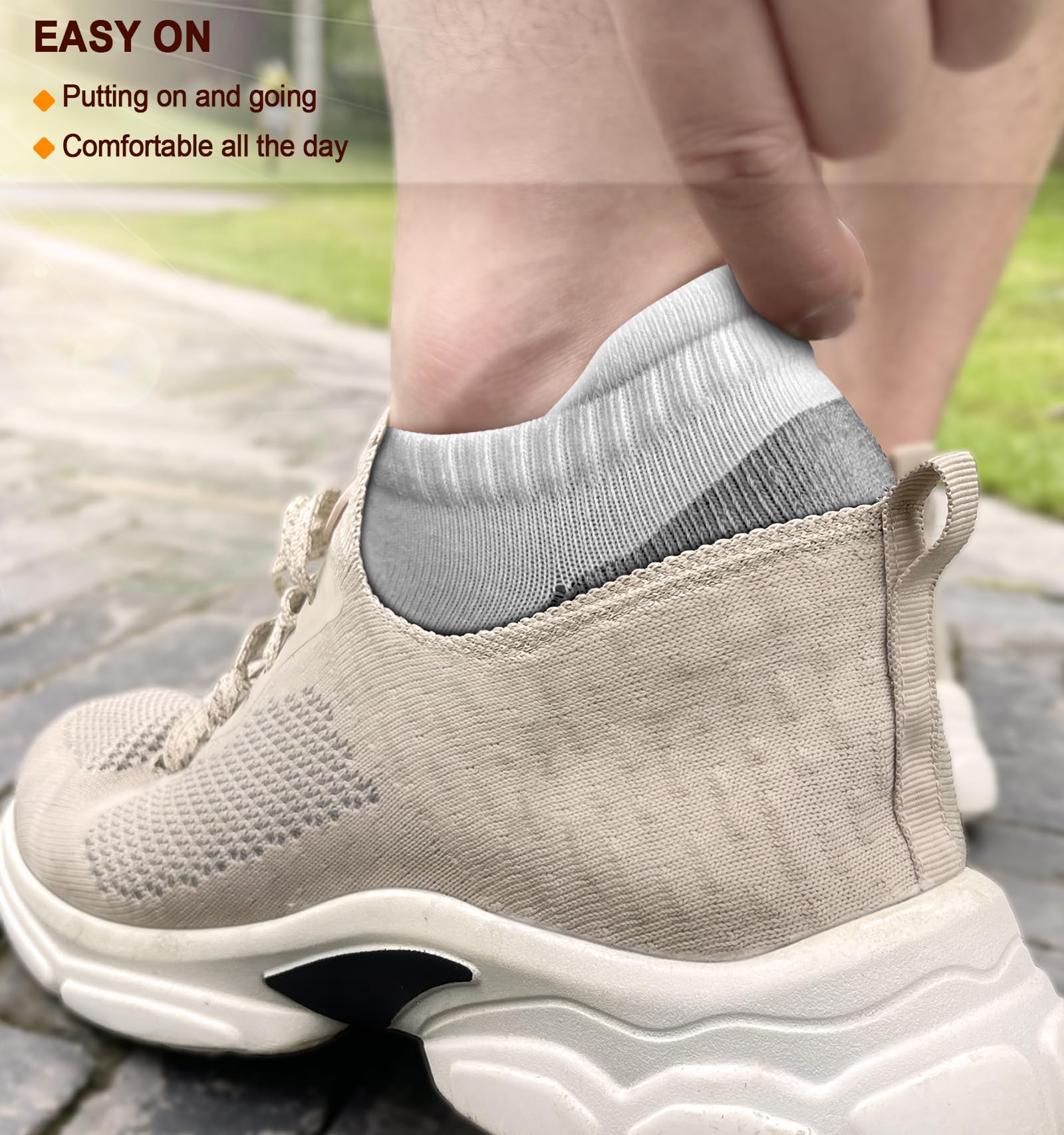 BREATHABLE--Low cut socks with high efficient wicking yarns,plus the net kitting on instep,these socks are super breathable to keep your feet dry and comfortable specially in walking or jogging;