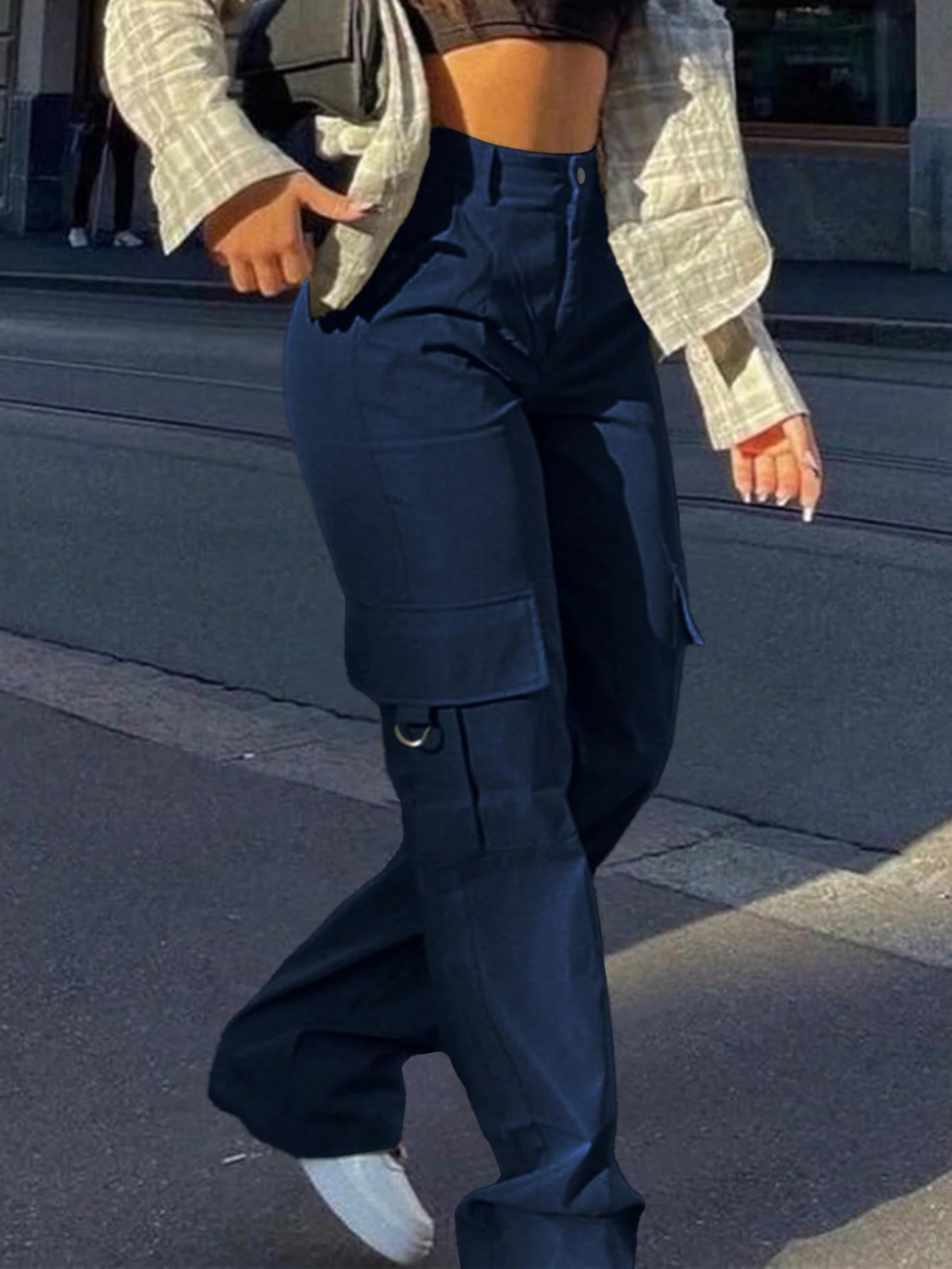【FEATURES】Women's cargo pants feature 4 pockets, high waist, relaxed fit, elastic back waistband,zipper and button closure. hip hop joggers sweatpants, wide leg cargo pants, Y2K style, hippie outfits, and the loose fit is ideal for casual or sporty.