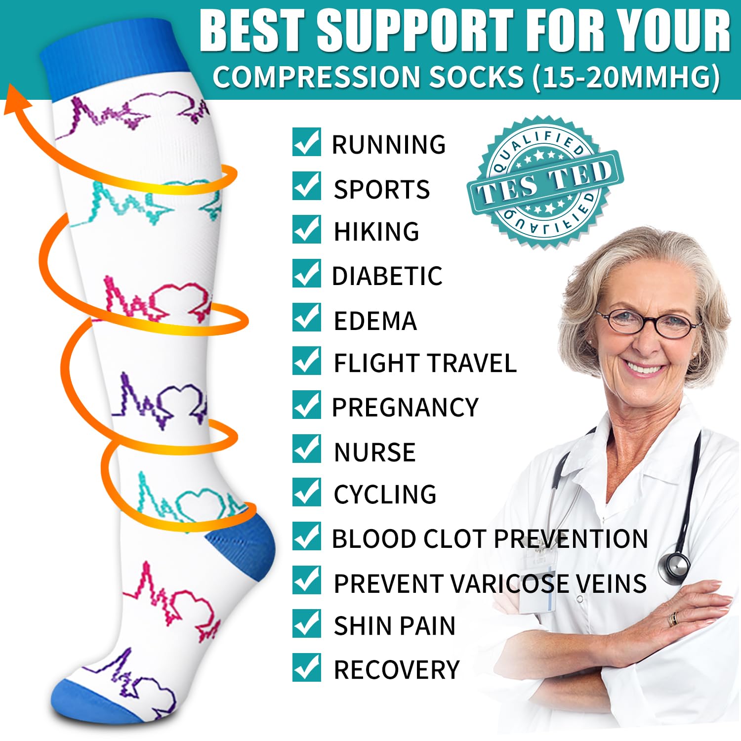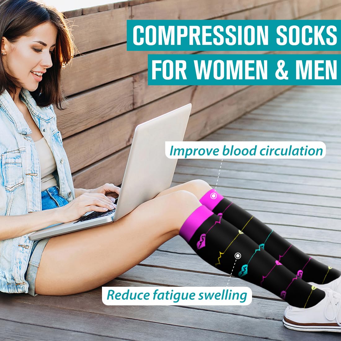 UPGRADE YOUR COMPRESSION SOCKS DRAWER! - With all the tasks of work and family (and of life itself!) we may forget to pay attention to and maintain the health of our legs. Our compression socks are designed to help increase circulation, improve leg and foot comfort, and reduce soreness and swelling, increase energy, All day comfort.Great for long periods of sitting or standing, endurance sports, flying and travel, post-workout recovery, pregnancy, and spider & varicose veins.