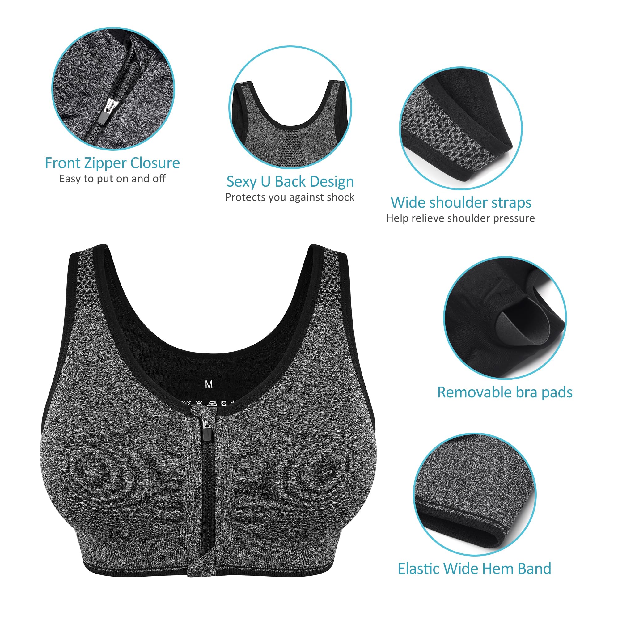 Premium Materail - This comfortable zip U Back sports bra is made of a comfortable Nylon and Spandex knit. Double-layer fabric delivers superior next-to-skin feel. It offers soft, luxurious feel and incredible fit, support and shape retention. Racerback with breathable and cool dry fabric for better drying solution