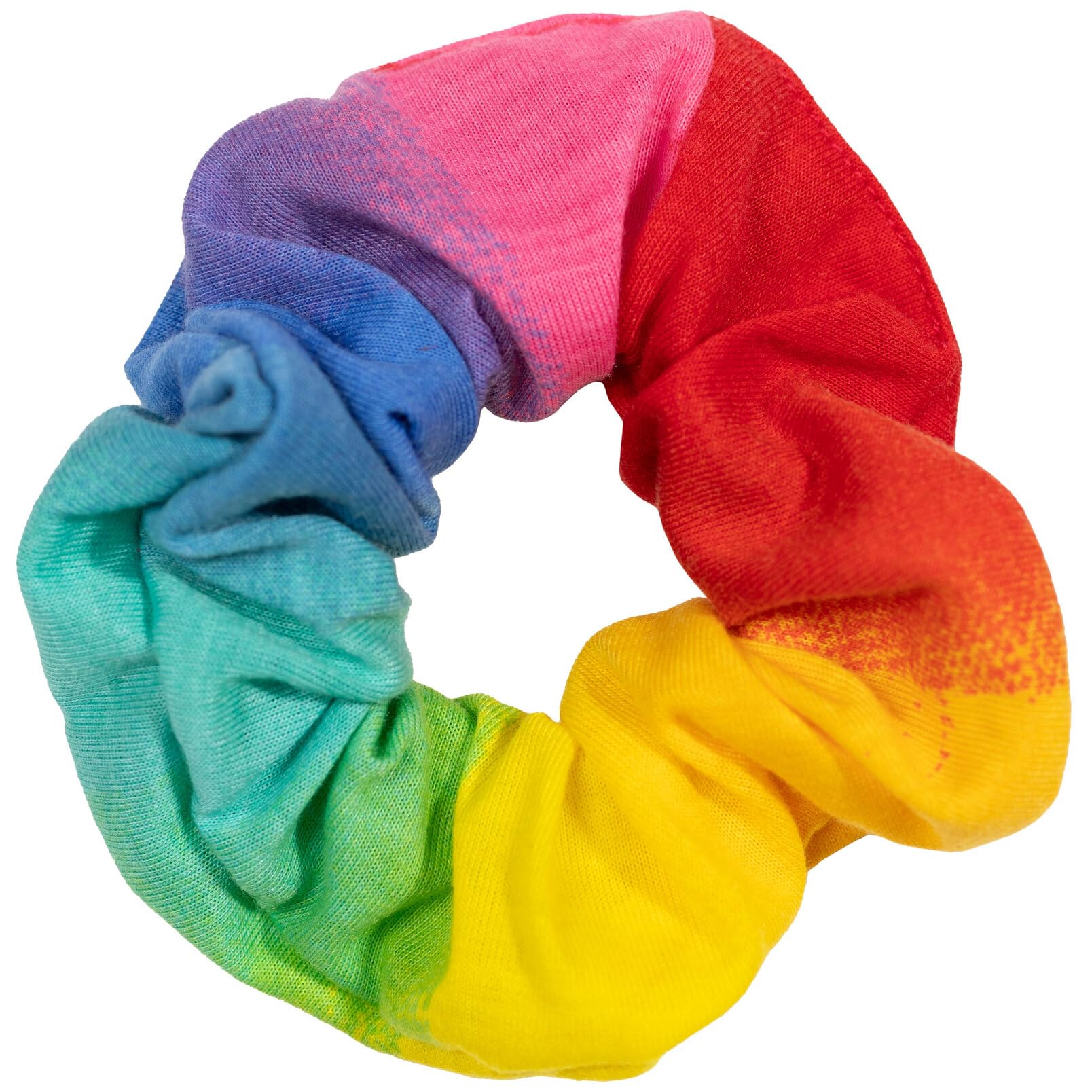 Awesome glitter screen print design featuring Elmo with the words "Elmo loves you" on top; All-over rainbow print on scrunchie and tutu