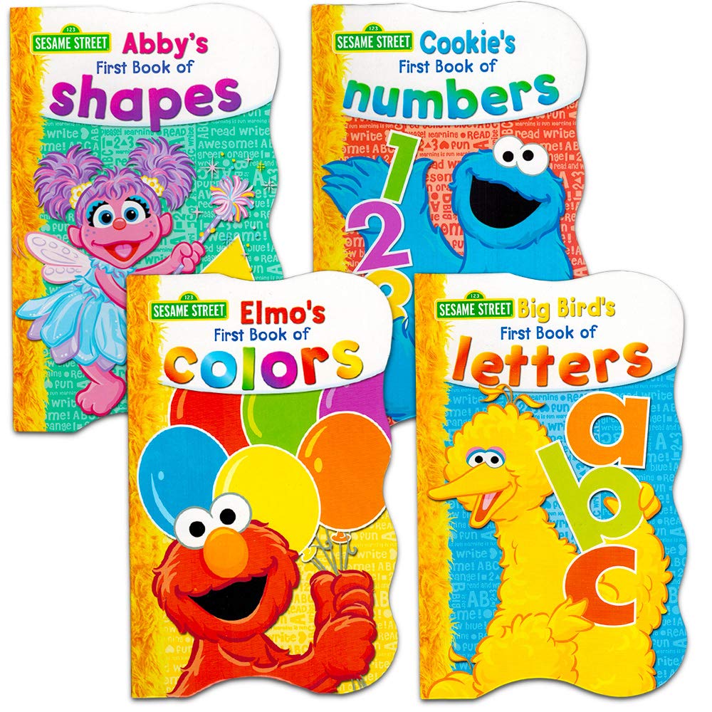 Sesame Street First Books Series; BIG Bird's Letters, Abby's Shapes, Elmo's Colors, Cookie's Numbers [Board Book Hardcovers, 4 Books]