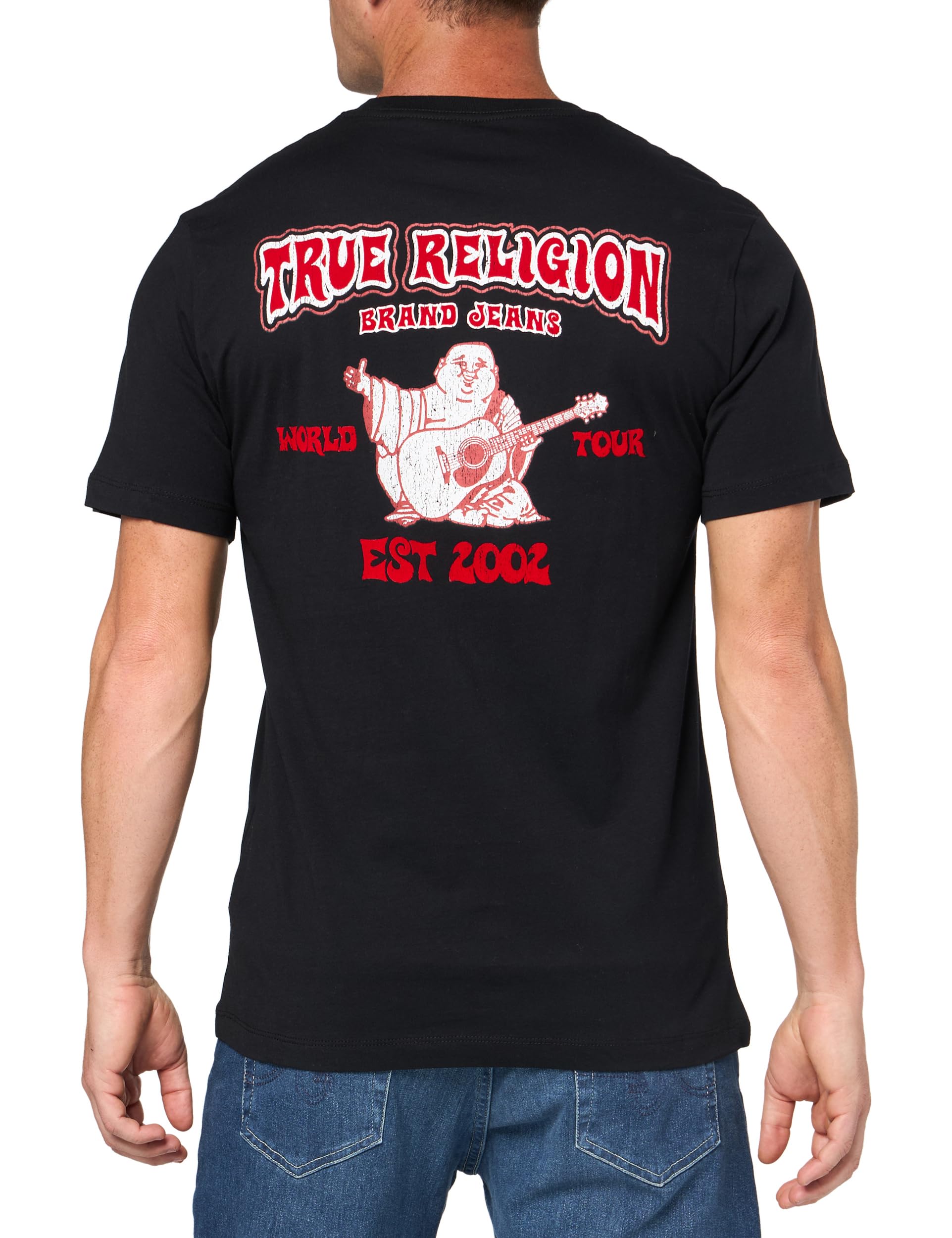 Effortless Cool: Whether worn alone or layered under a jacket or hoodie, the True Religion Men's SS Vintage Flock Tee effortlessly enhances your casual style with its vintage-inspired design and comfortable fit.