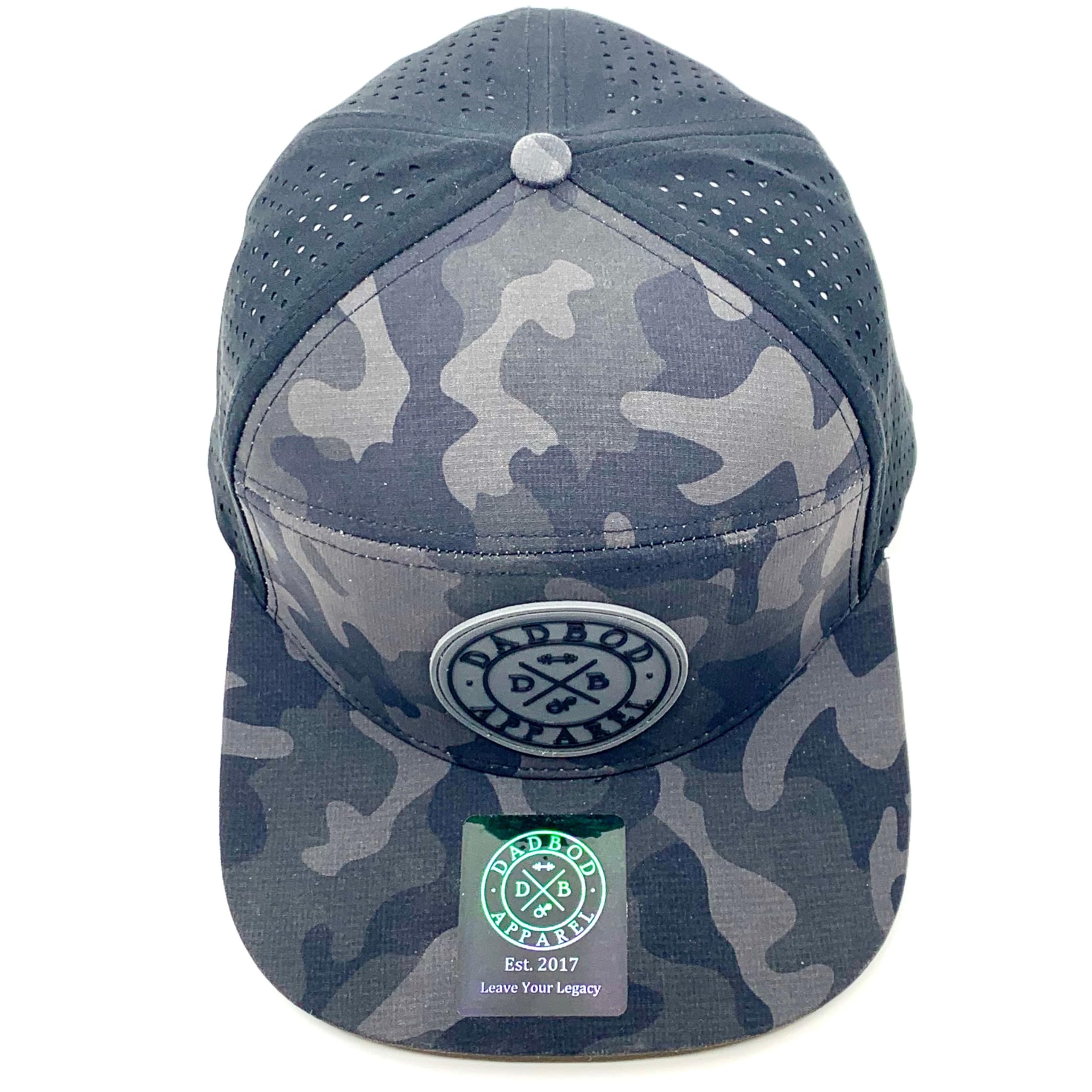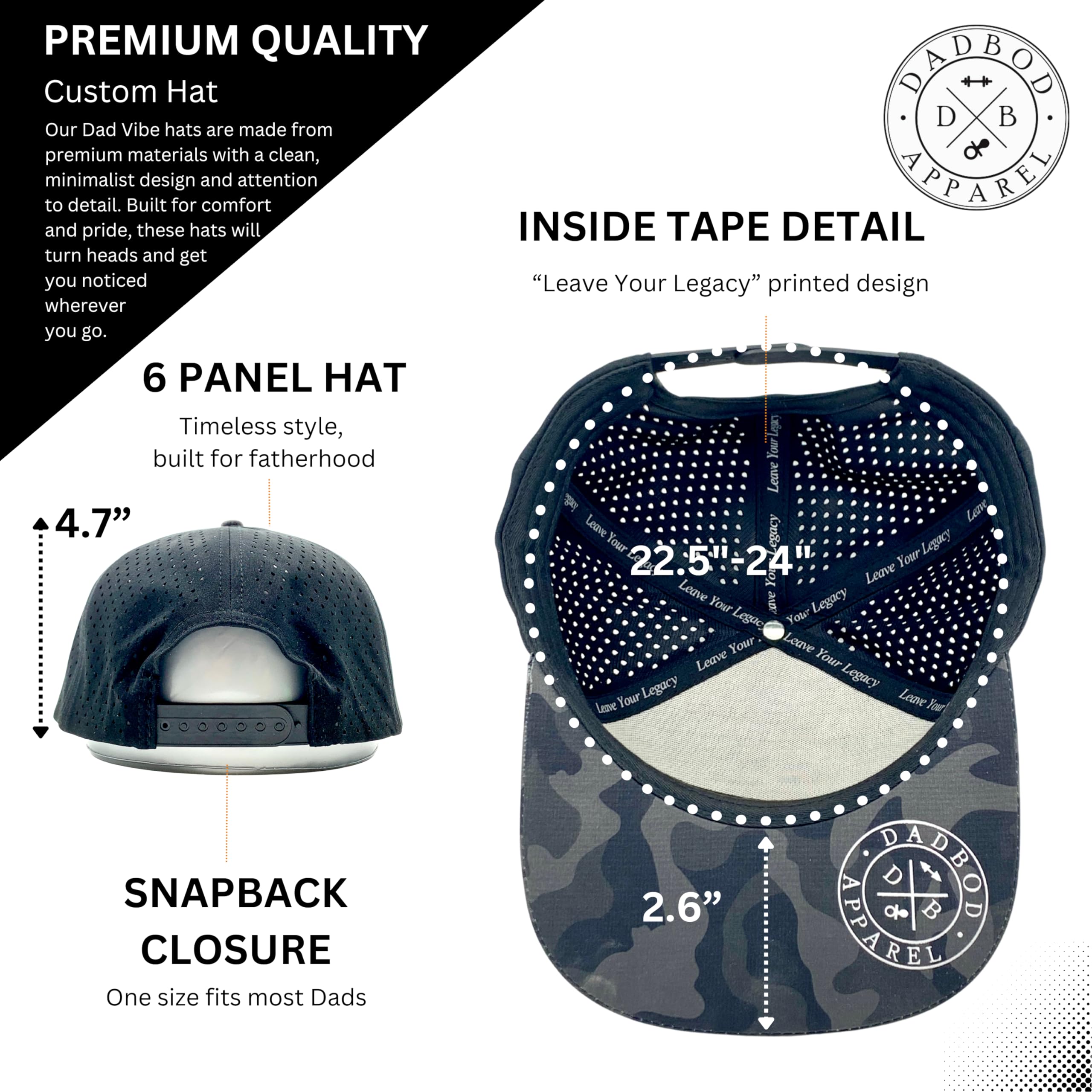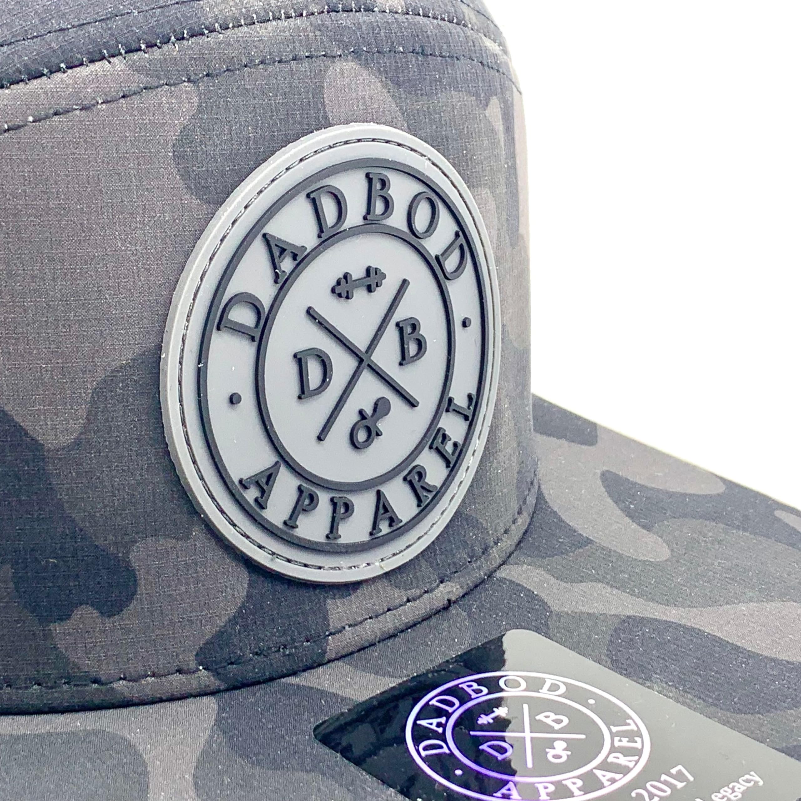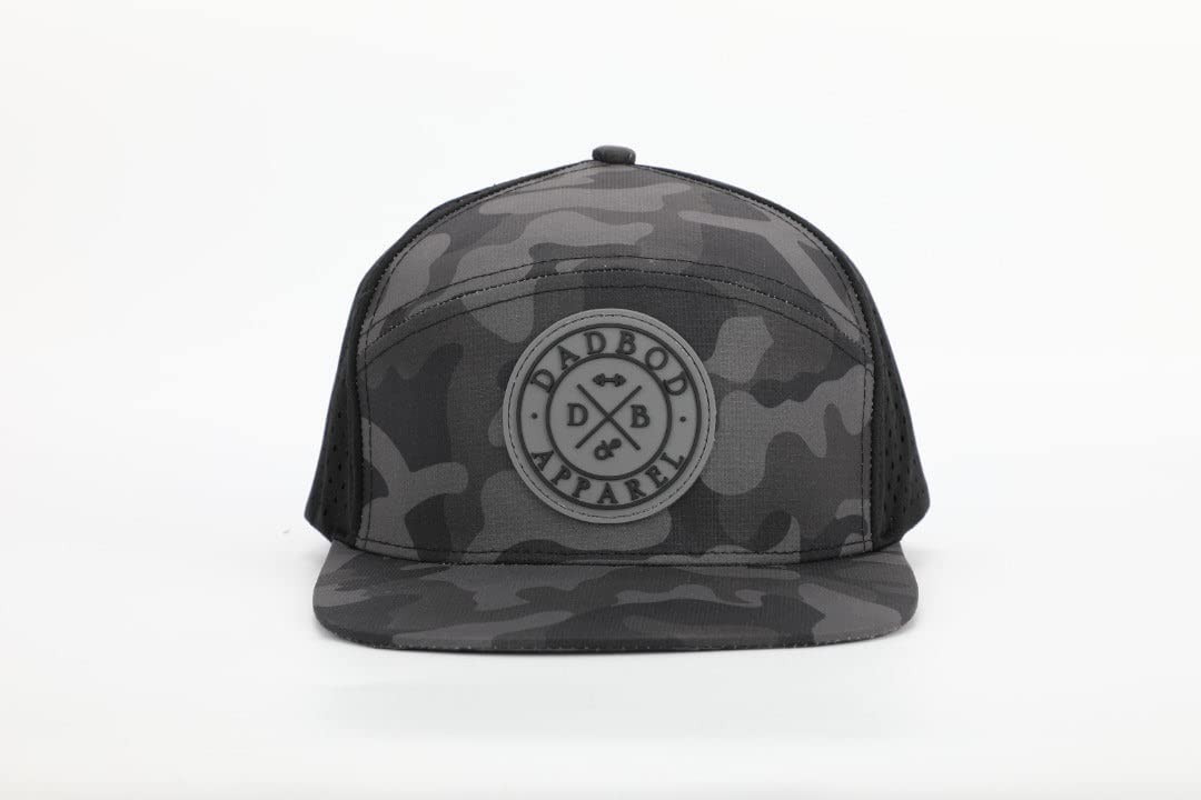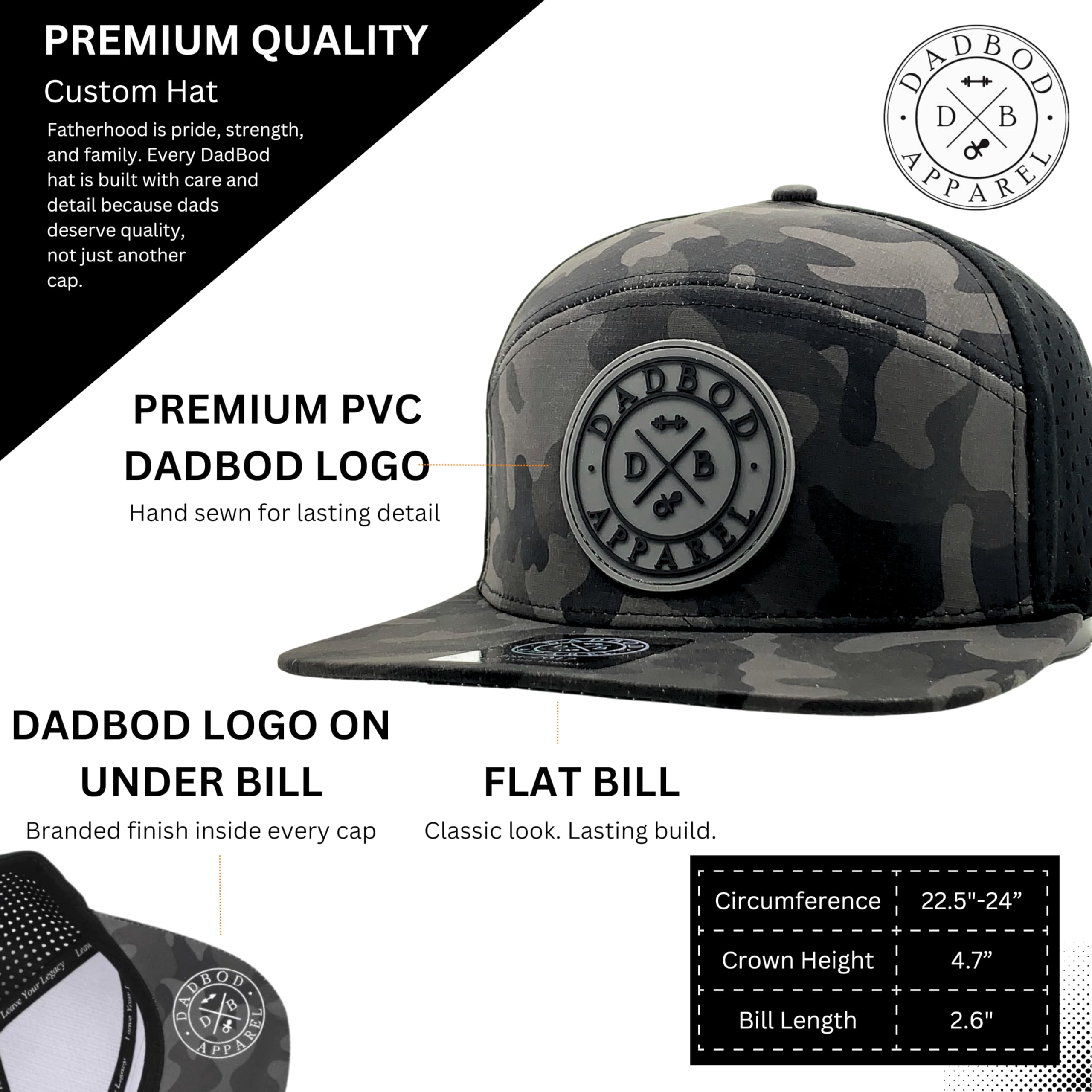 Premium Active 6 Panel Logo Hat: This black hat is a premium 6-panel baseball cap for men with a unique DadBod Apparel logo. Perfect for dads who love to wear caps, it's a stylish addition to your wardrobe.