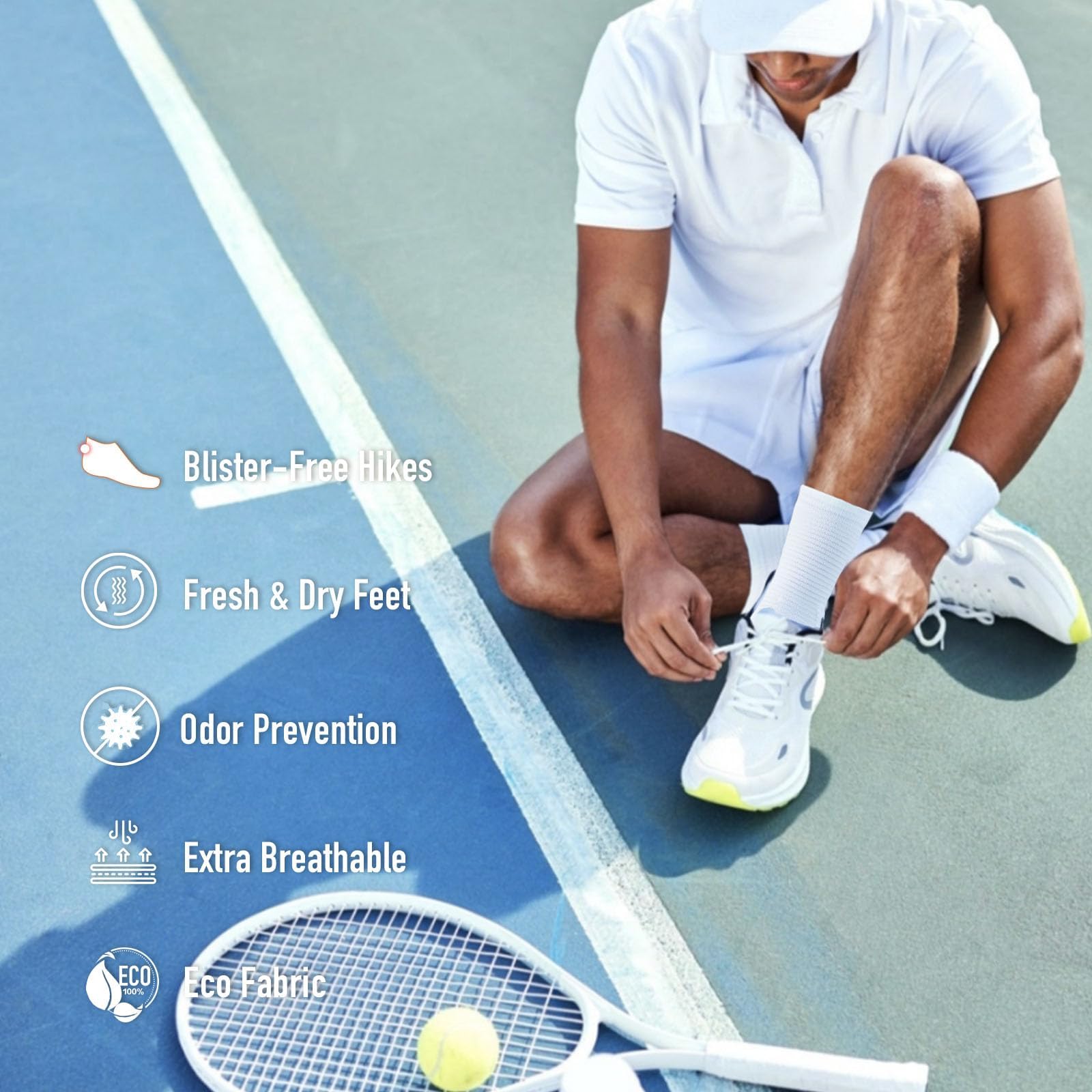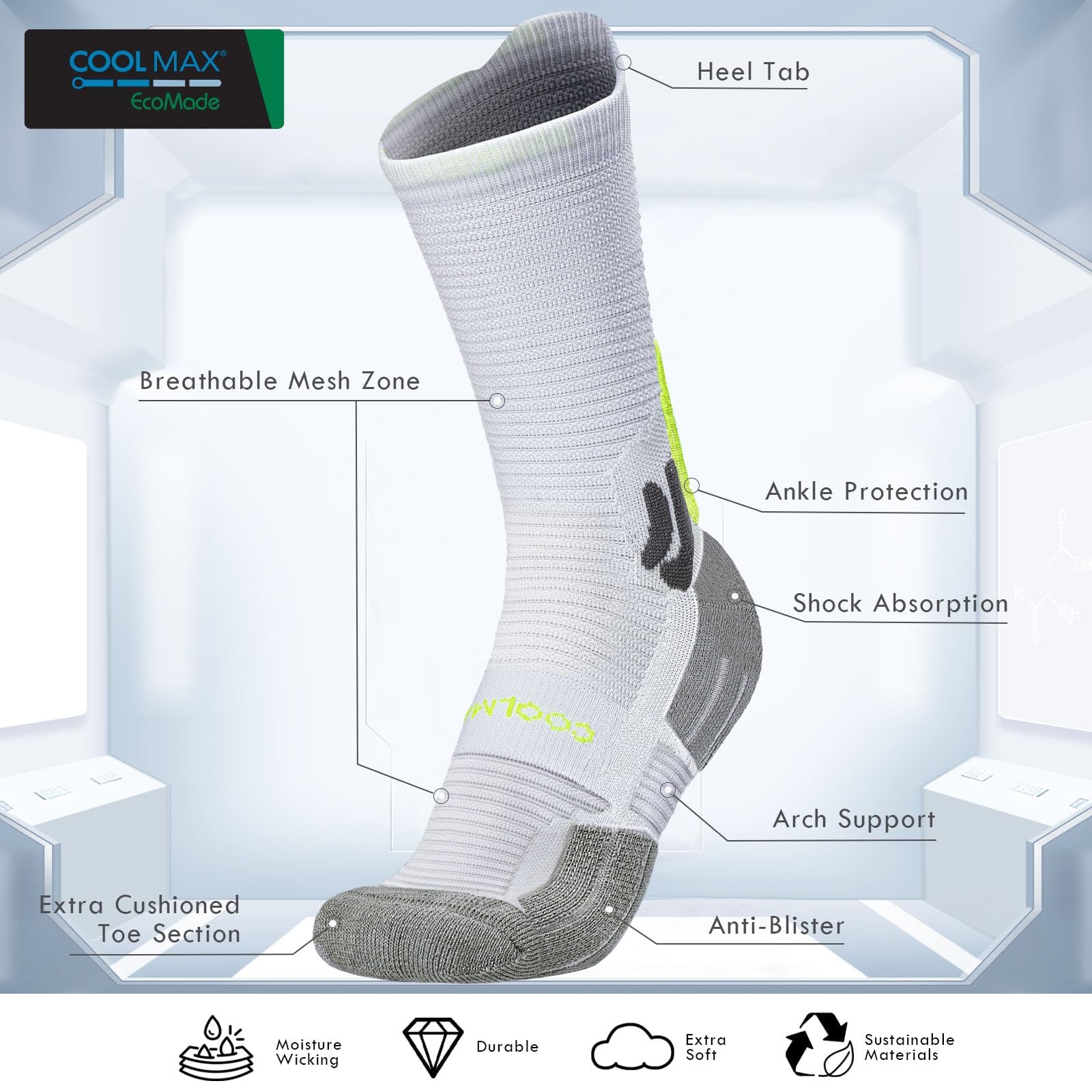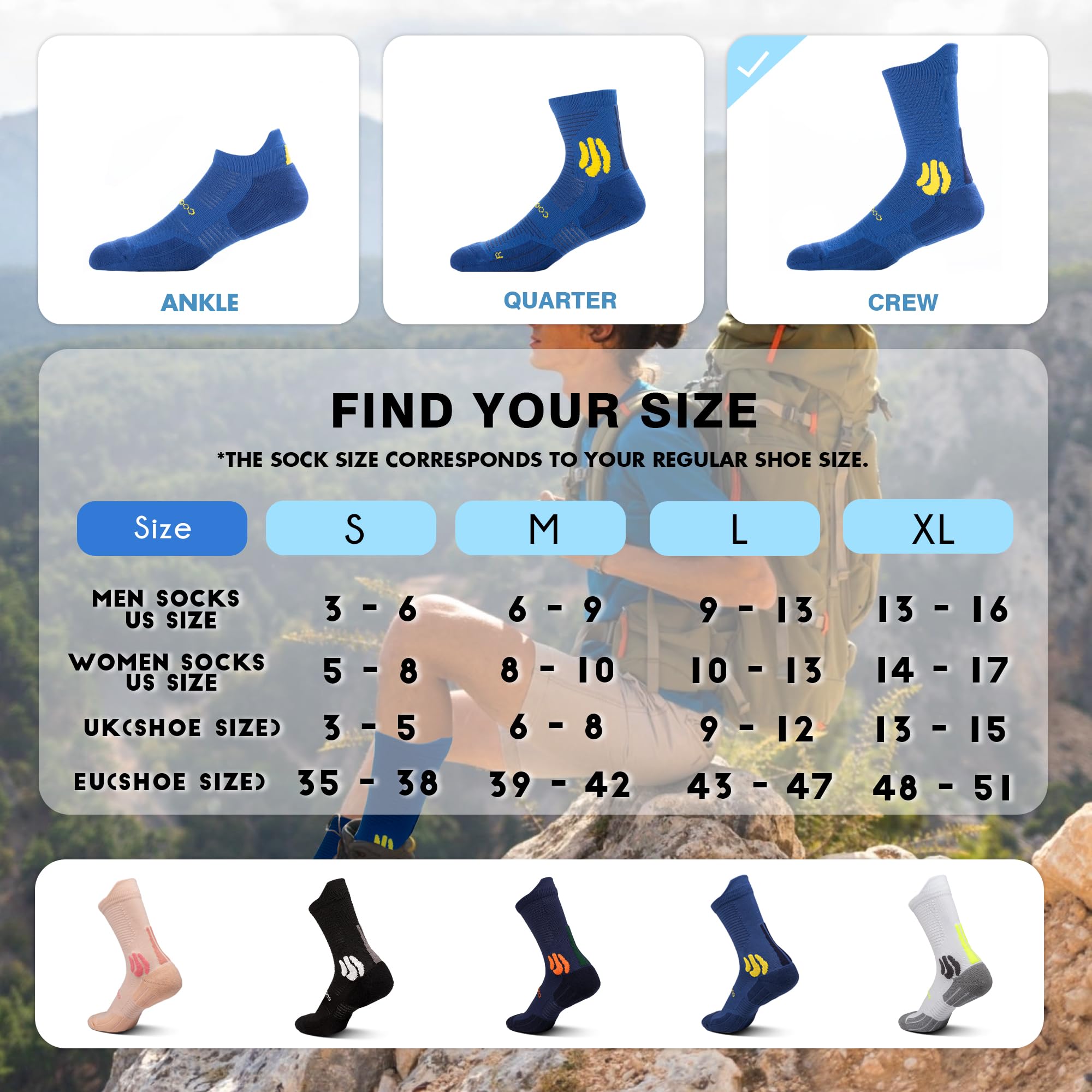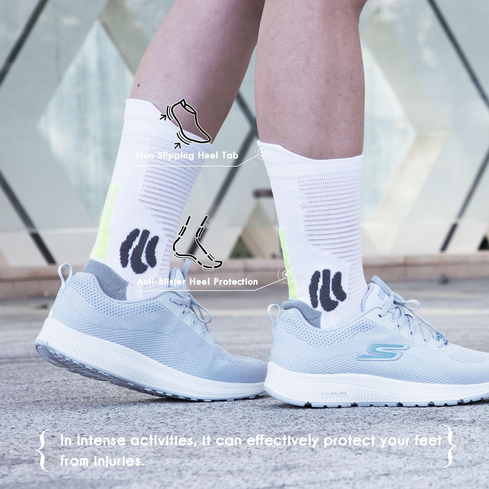 [Compression Design & Arch Support System] These athletic performance socks are designed with compression, providing just the right amount of compression and an arch support system that ensures supportive stability for the arches during intense exercise while maintaining ankle flexibility. The proper compression band designed in the arch fits the individual shape of your foot, hugging your foot evenly to keep the sock in position in your shoe.