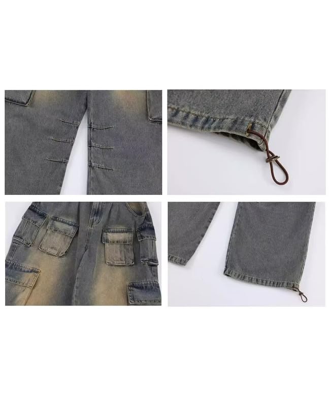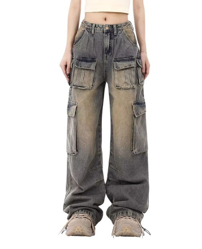 Features:High waisted cargo pants women with big pockets, stretch elastic high waist,zipper and button closure hip hop, wide leg cargo pants, y2k style, grunge jeans, and the loose fit is ideal for casual or sporty